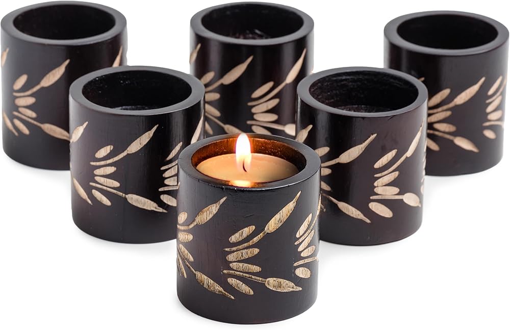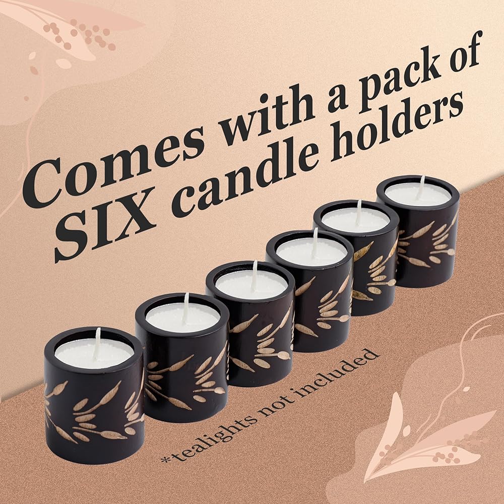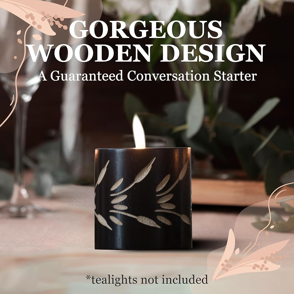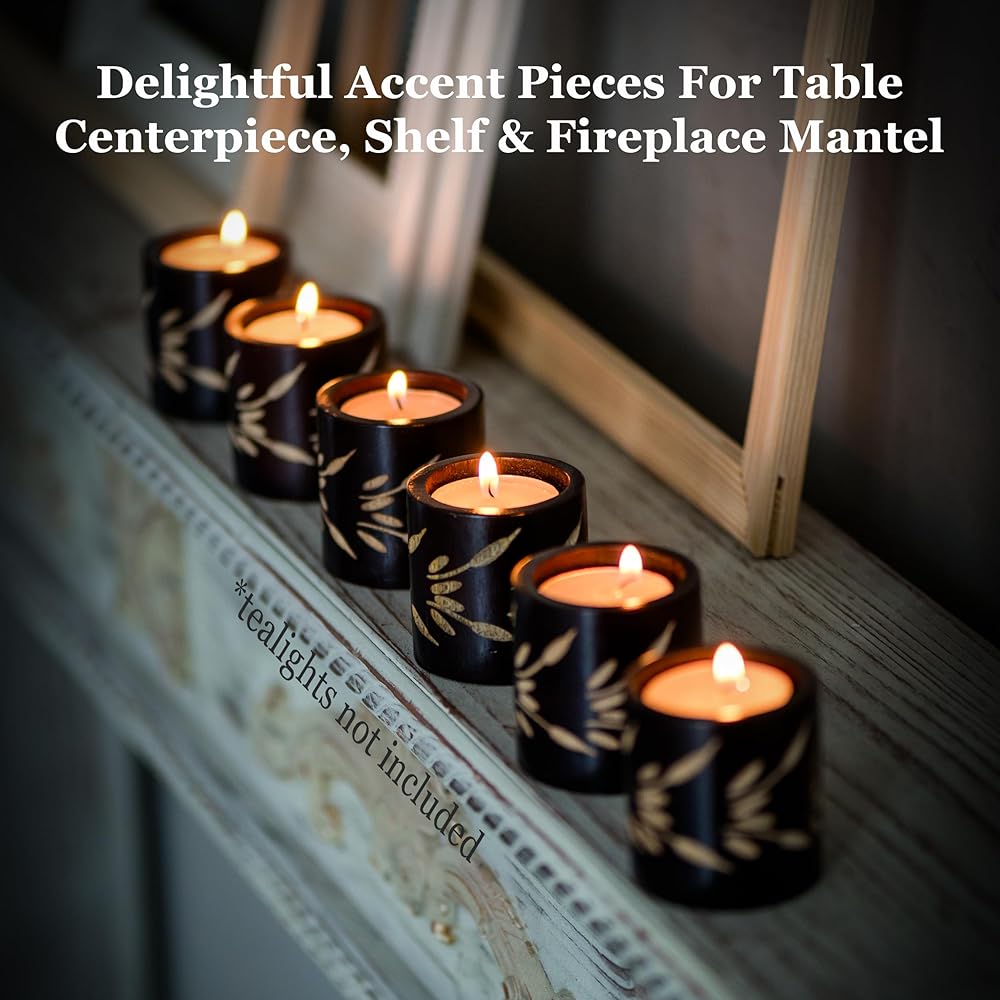 صناعة ممتازة - كل حامل من حاملات الشموع الستة منحوت يدويًا بدقة من الخشب الفاخر، مما يعرض تفاصيل معقدة وحرفية فريدة تضيف لمسة من الأناقة الحرفية إلى أي مساحة.
