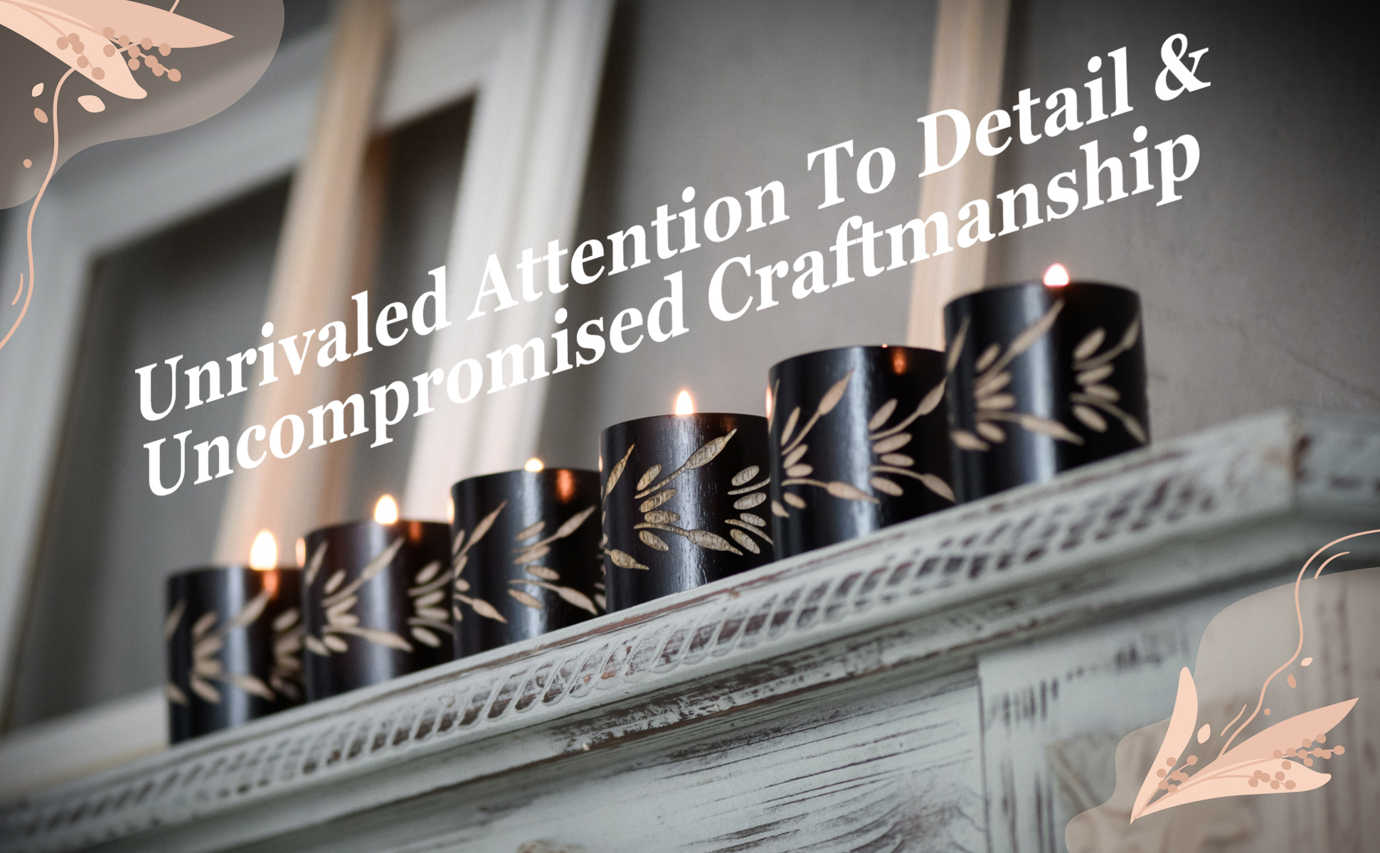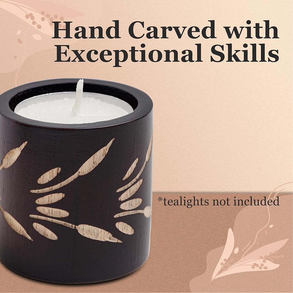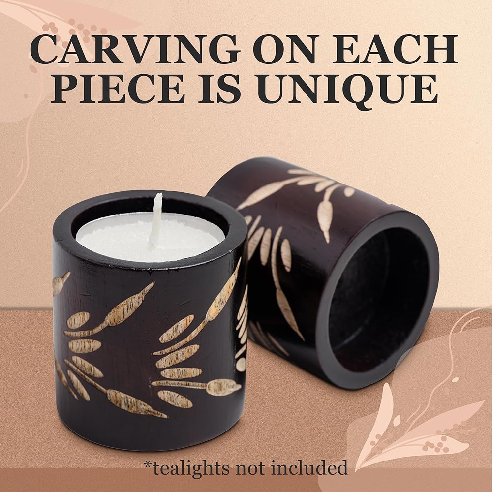 صناعة ممتازة - كل حامل من حاملات الشموع الستة منحوت يدويًا بدقة من الخشب الفاخر، مما يعرض تفاصيل معقدة وحرفية فريدة تضيف لمسة من الأناقة الحرفية إلى أي مساحة.