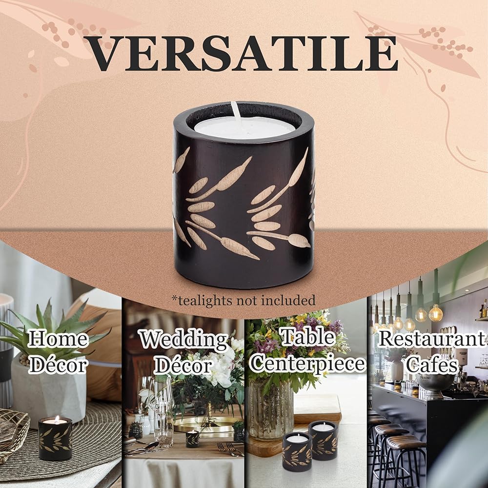 ديكور متعدد الاستخدامات - سواء تم استخدامه في العشاء الحميم، أو حمامات الاسترخاء، أو الأمسيات المريحة بجوار المدفأة، فإن حاملات الشموع الخشبية المنحوتة يدويًا هذه تعزز الجو بجمالها الطبيعي وتوهجها المهدئ، مما يجعلها مثالية للاستخدام اليومي والمناسبات الخاصة.
