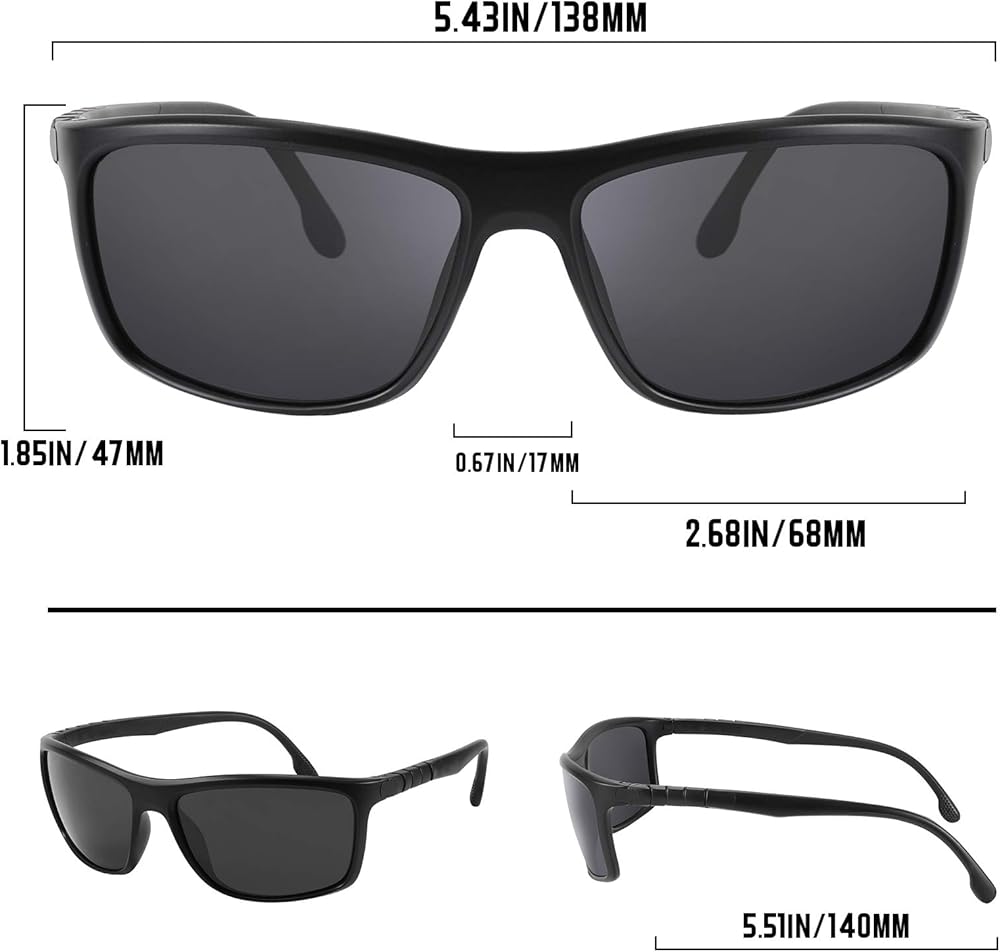 [أبعاد المنتج]-- عرض العدسة: 68 مم (2.68 بوصة)، ارتفاع العدسة: 47 مم (1.85 بوصة)، طول الصدغ: 140 مم (5.51 بوصة)، جسر الأنف: 17 مم (0.67 بوصة)، عرض الإطار الإجمالي: 138 مللي متر (5.43 بوصة).