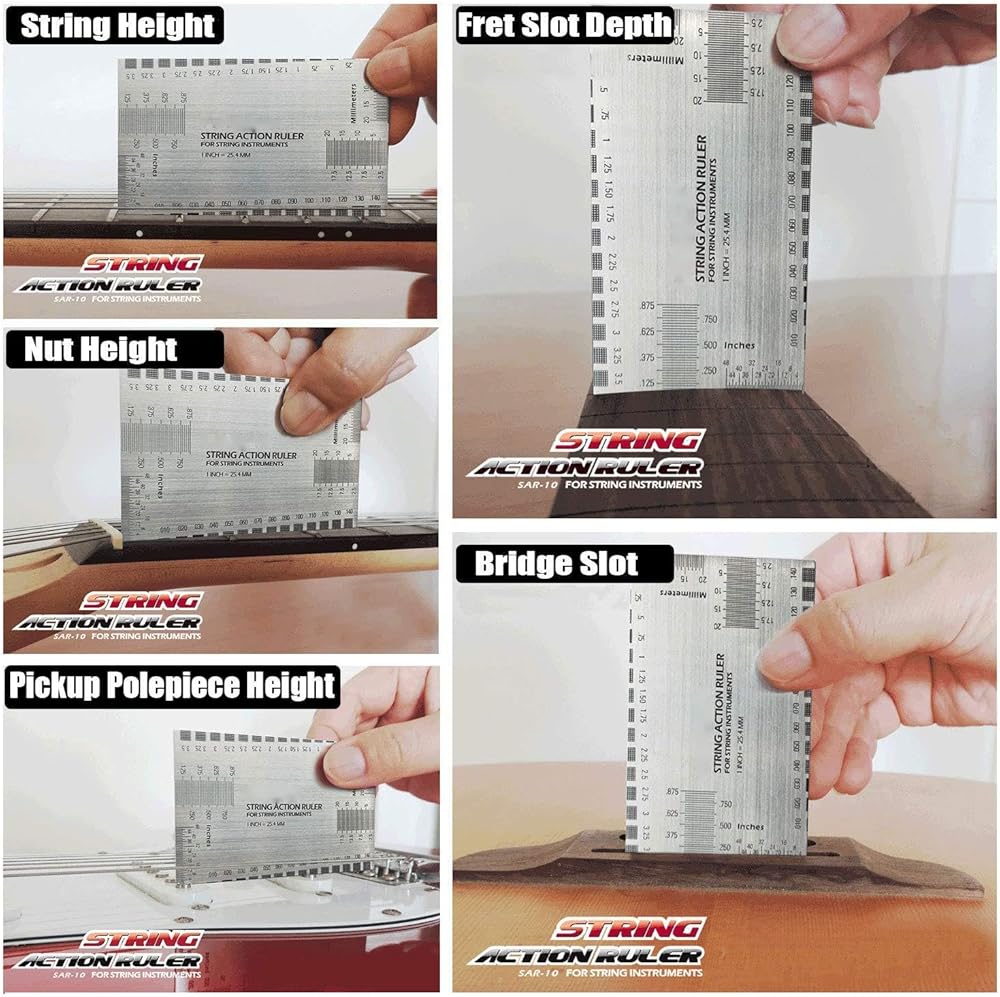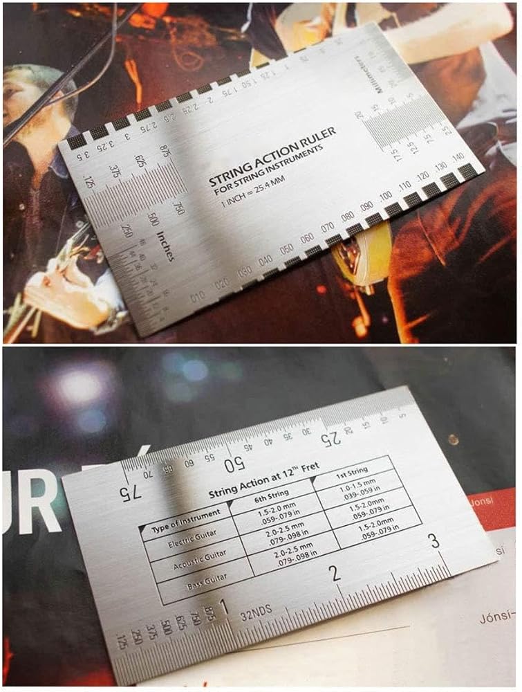 مقياس حركة الجيتار مقياس عمل الجيتار قياس ارتفاع سلسلة الجيتار مقياس مسطرة الحركة، أداة إصلاح الجيتار من أجل Luthier، مناسب للجيتار، القيثارة، الباس، البانجو، المندولين