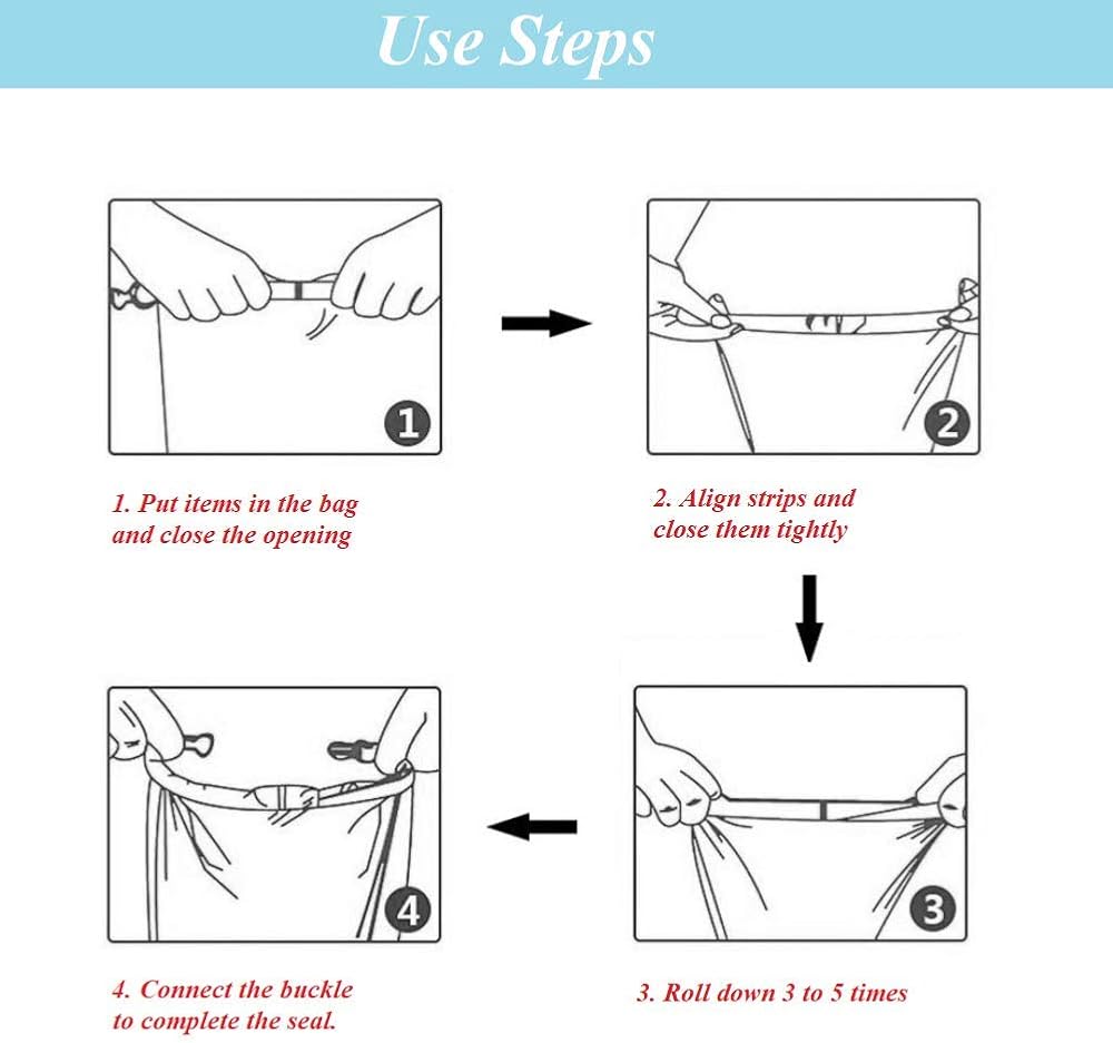 تشغيل سريع - ضع أغراضك في الحقيبة، وأمسك الشريط العلوي ولفه بإحكام من 3 إلى 5 مرات ثم قم بتوصيل الإبزيم لإكمال الغلق، فهو سهل وسريع الاستخدام للغاية.