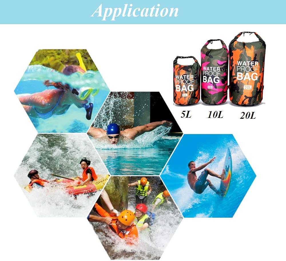 مناسبات متعددة - يمكن للحقيبة الجافة أن تطفو على الماء وتحافظ على أغراضك آمنة وجافة في الماء، مثالية للسباحة والتجديف وركوب القوارب والإبحار وركوب الأمواج والتجديف والتخييم وأي أنشطة خارجية.
