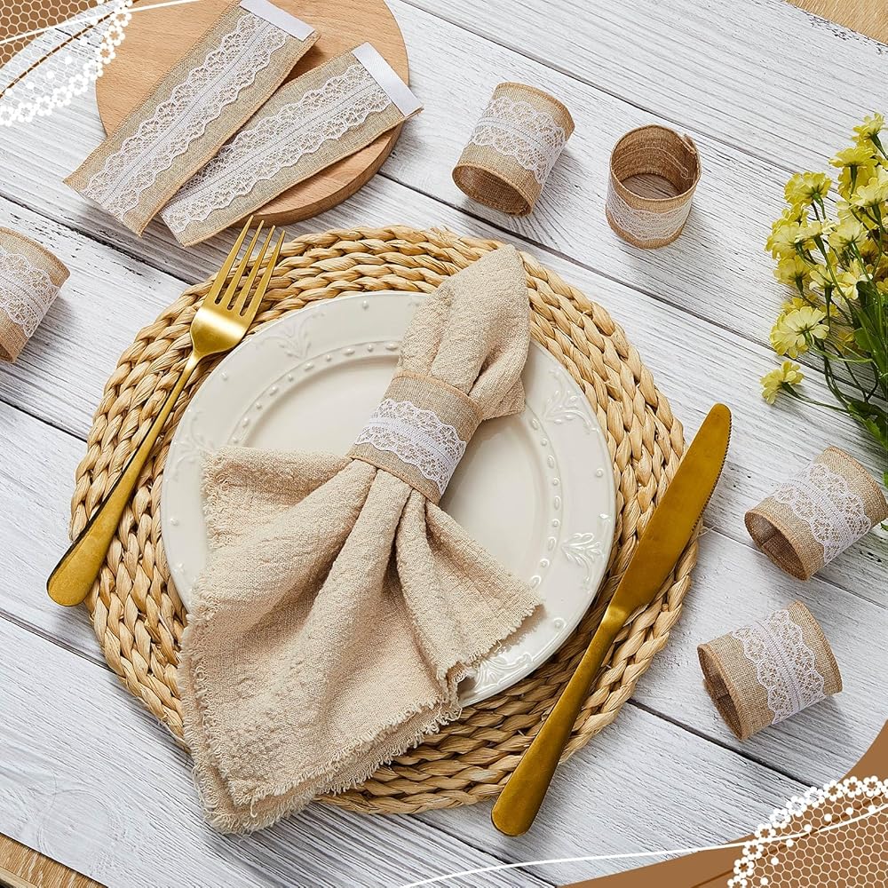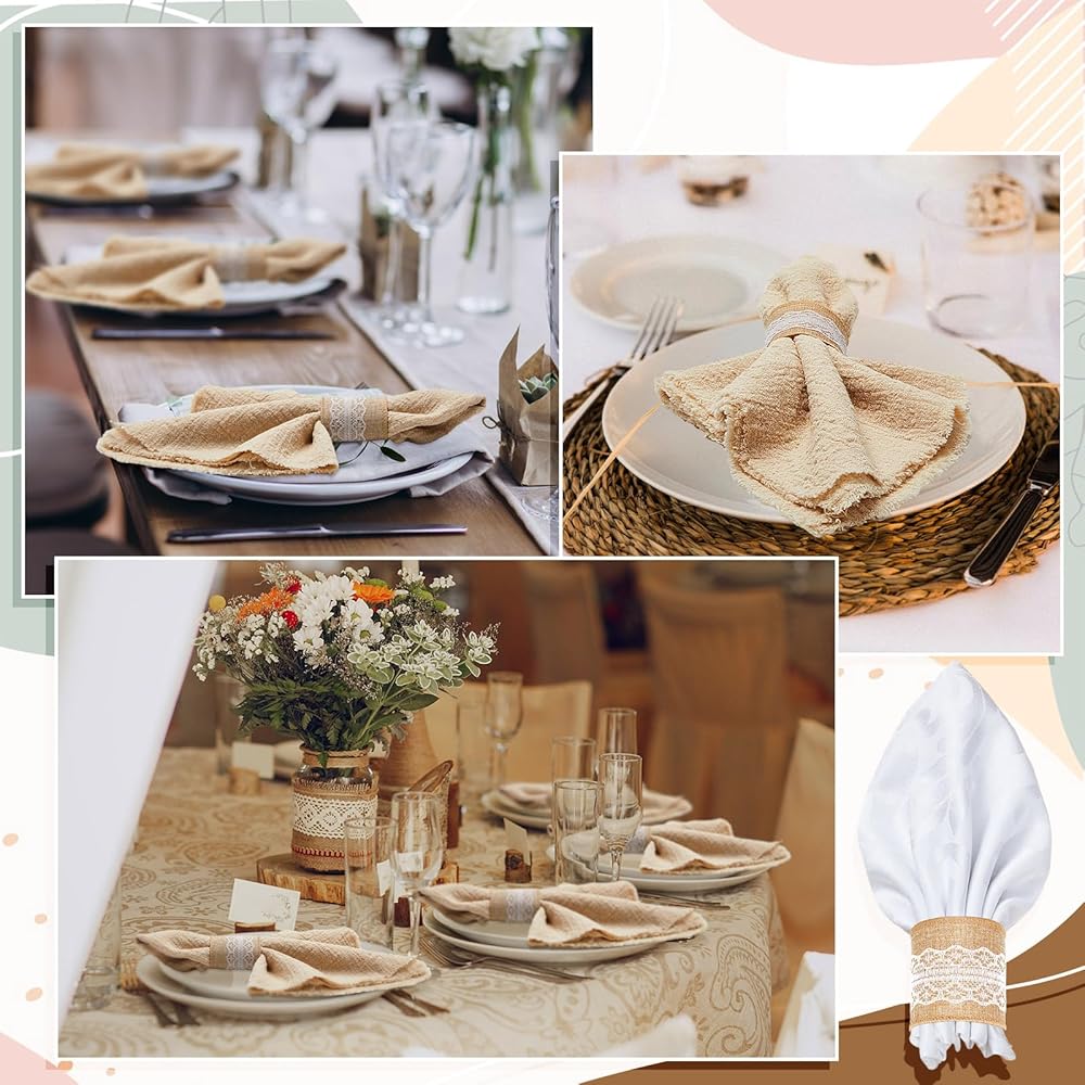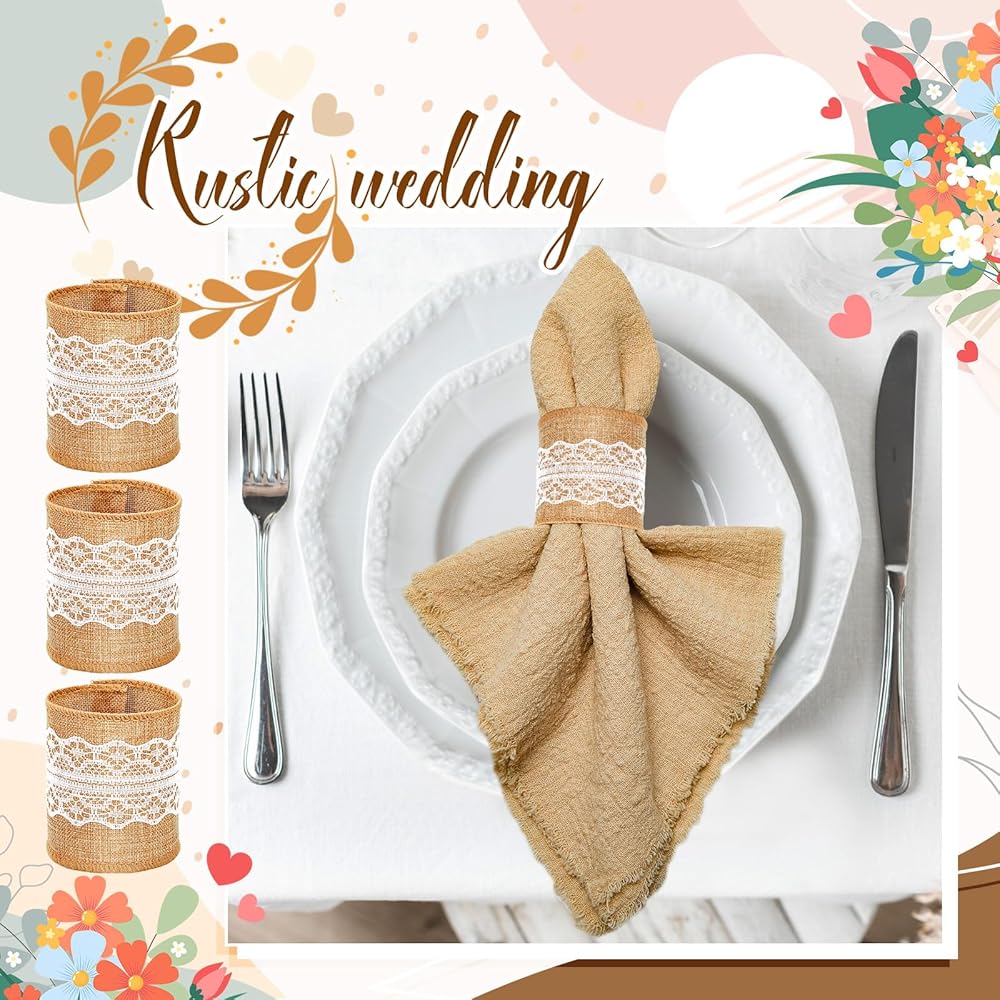 The design of the napkins band is unique and elegant, adding a rustic touch to your dining table. They are suitable for weddings, parties, or most special occasions you could think of.