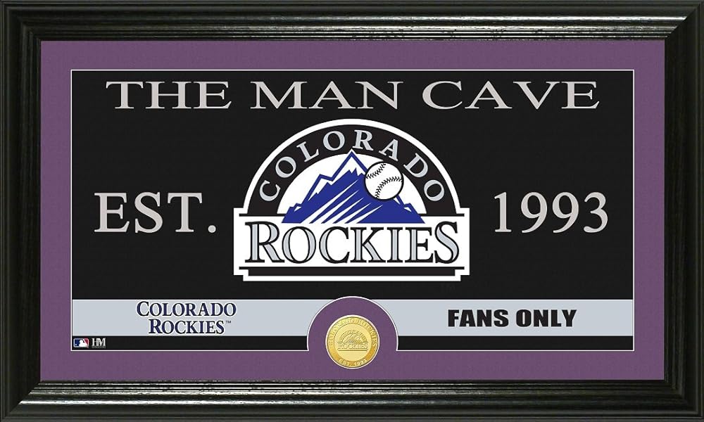 Start your Colorado Rockies Man Cave with our handsome Colorado Rockies MAN CAVE sign! This 12 x 20 plaque shows a photo of the teams logo and established date along with THE MAN CAVE written across the top, and included team coin.