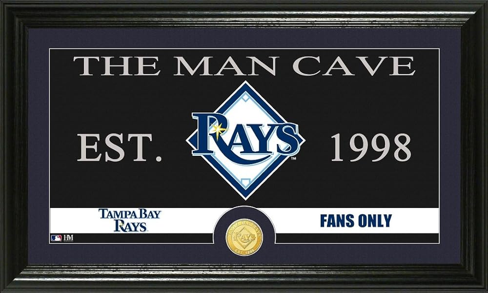 Start your Tampa Bay Rays Man Cave with our handsome Tampa Bay Rays MAN CAVE sign! This 12 x 20 plaque shows a photo of the teams logo and established date along with THE MAN CAVE written across the top, and included team coin.