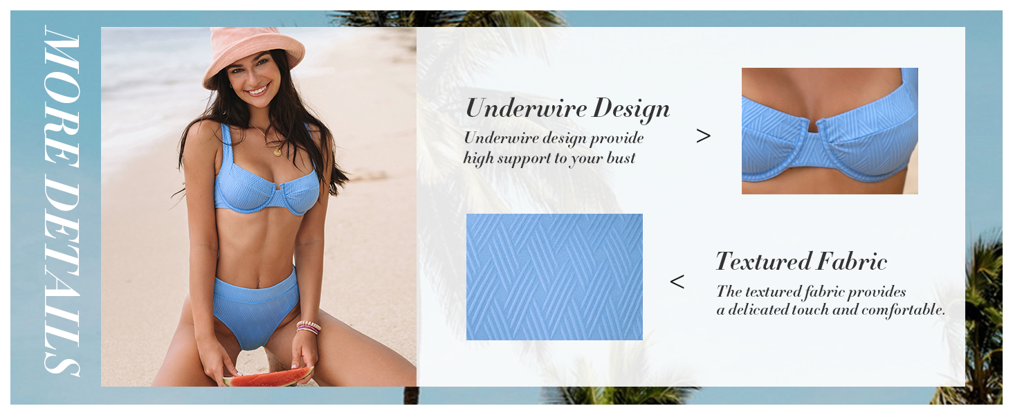 التصميم: نقدم لكم مجموعات البكيني متوسطة الارتفاع. يمزج هذا الزي الأنيق للسباحة بسلاسة بين الأناقة ولمسة من التصميم الحديث. يضيف الجزء العلوي من البكيني ذو السلك السفلي لمسة من الجاذبية، بينما توفر الأجزاء السفلية المحببة مقاسًا مريحًا، ويثير اللون الأزرق الناعم شعورًا بالهدوء.