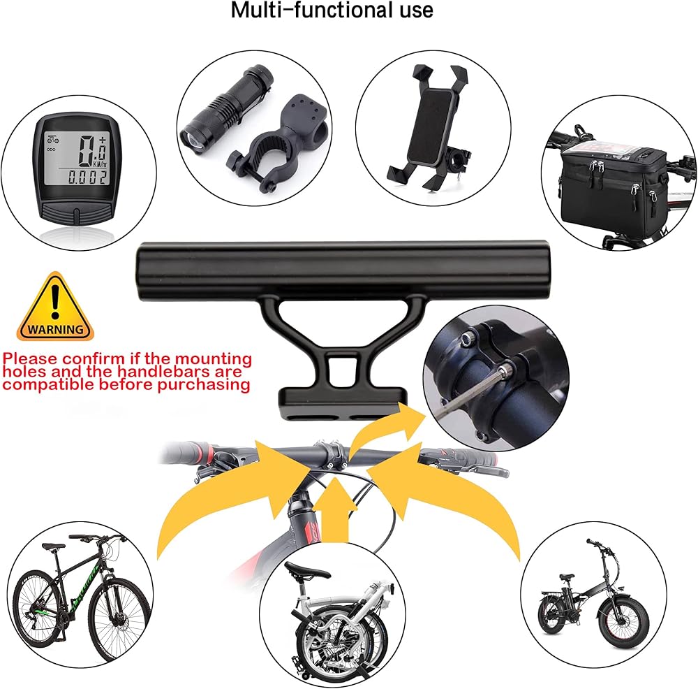 موسع مقود الدراجة، KWOKWEI 15 سم دعامة تمديد مزدوجة للمقود من سبائك الألومنيوم للدراجة، دعامة تمديد مزدوجة للمقود لحمل حامل الهاتف، وأجهزة GPS