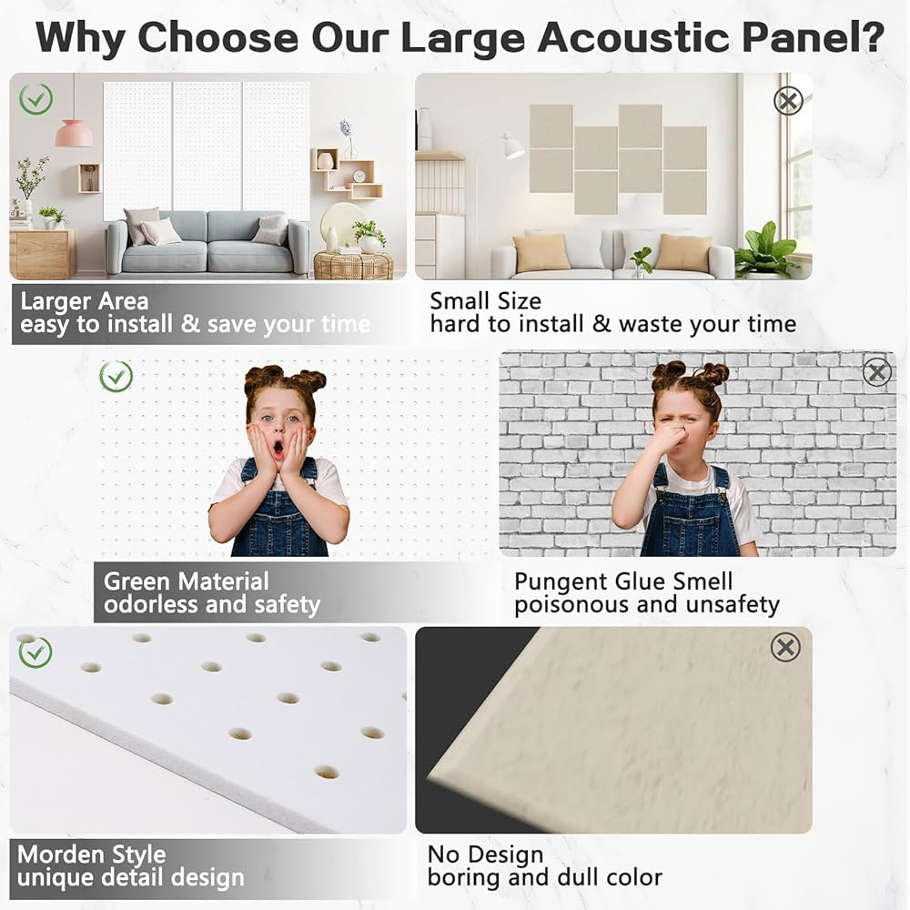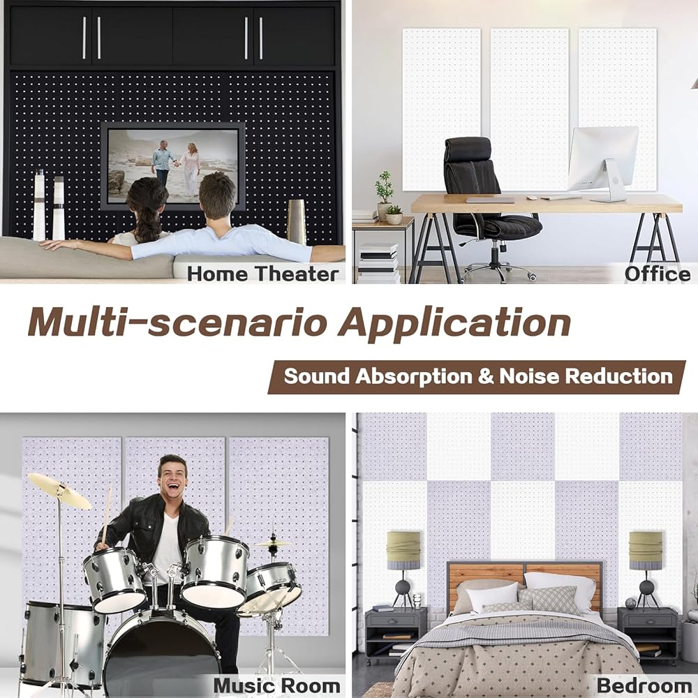 تطبيقات واسعة: ستعمل هذه اللوحات الصوتية الكبيرة على تحسين التأثير الصوتي لأي غرفة بشكل كبير، مما يجعلها خيارًا مثاليًا للمساحات ذات جودة الصوت الأكثر أهمية، مثل استوديوهات التسجيل أو المسارح المنزلية أو المكاتب أو أي غرفة تريد الحد من الضوضاء فيها الانتشار. ويضمن الحجم الكبير تأثيرًا كبيرًا مع عدد أقل من الألواح، مما يجعلها حلاً اقتصاديًا وفعالاً لأي مساحة كبيرة.