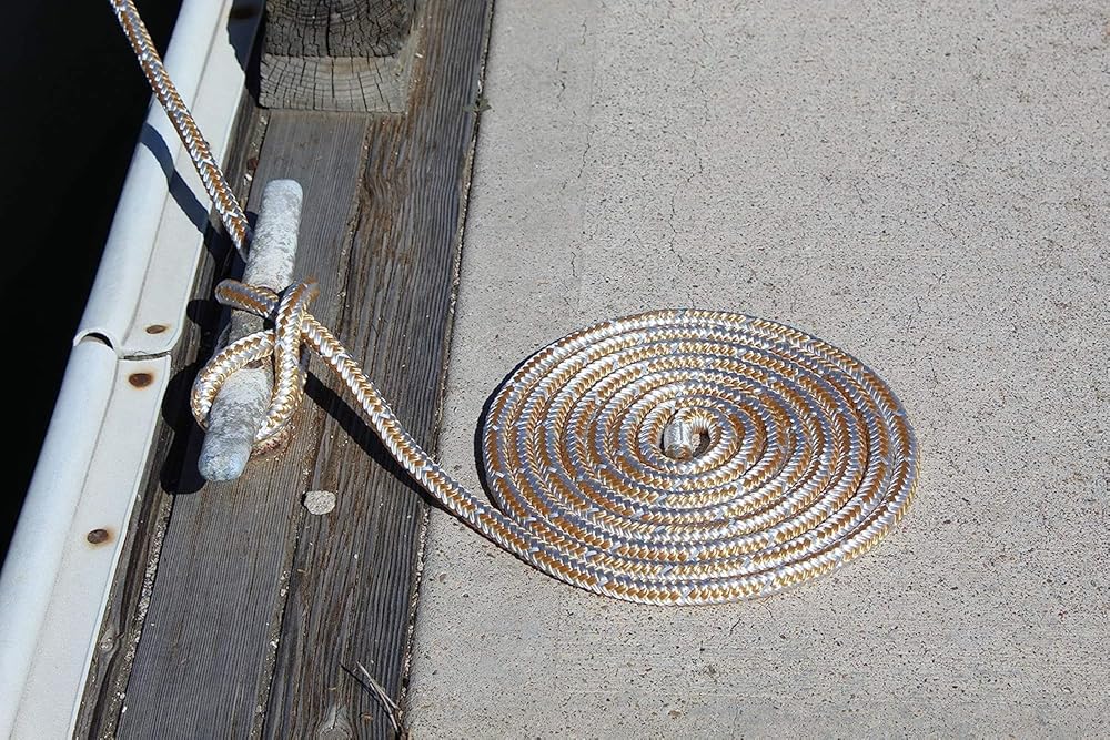 5/8 بوصة × 25 بوصة - ذهبي/أبيض (عبوتان) خط إرساء متين من النايلون المضفر المزدوج - للقوارب حتى 45 بوصة - خط إرساء طويل الأمد - خطوط إرساء قوية من النايلون للقوارب - خط إرساء المراكب الشراعية من الدرجة البحرية