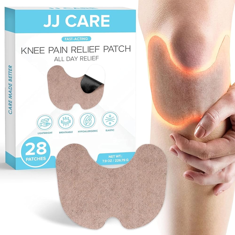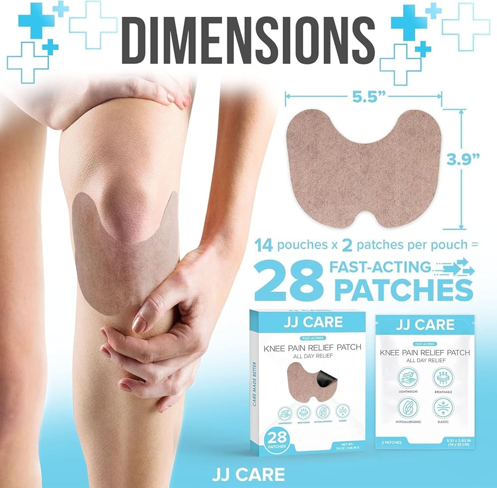 رقع الركبة من جي جي كير - 28 قطعة من رقع الركبة لتخفيف الآلام بقوة إضافية - رقعة تخفيف آلام الركبة 5.5 سم × 3.9 سم، رقعة تخفيف آلام الركبة لالتهاب المفاصل والالتهابات وعرق النسا والعضلات والمفاصل