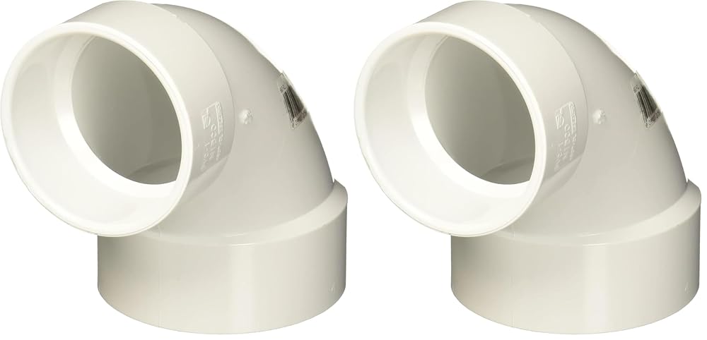 The NIBCO 4807-CL 90-degree elbow pipe fitting is made of PVC for drain, waste, and vent systems (DWV) and has hub connections. This 90-degree elbow fitting, or "ell," connects two pipes at a 90-degree angle to change the direction of flow between pipes. It has female hub openings for sliding over the ends of male pipes. The hub end connects to pipes with a smooth bore for enhanced flow. This fitting is made of PVC for use in non-pressure residential and commercial drain, waste, and vent (DWV) sanitary systems. PVC resists corrosion and chemicals, exhibits high strength, and weighs less than fittings made from metal. PVC can be connected to other materials such as steel, copper, or cast iron using transition fittings. This fitting provides superior flow to metal because of its smooth interior finish, which reduces friction and inhibits buildup of materials. This fitting meets American Society for Testing and Materials (ASTM) D2665 and D3311 specifications for quality assurance.