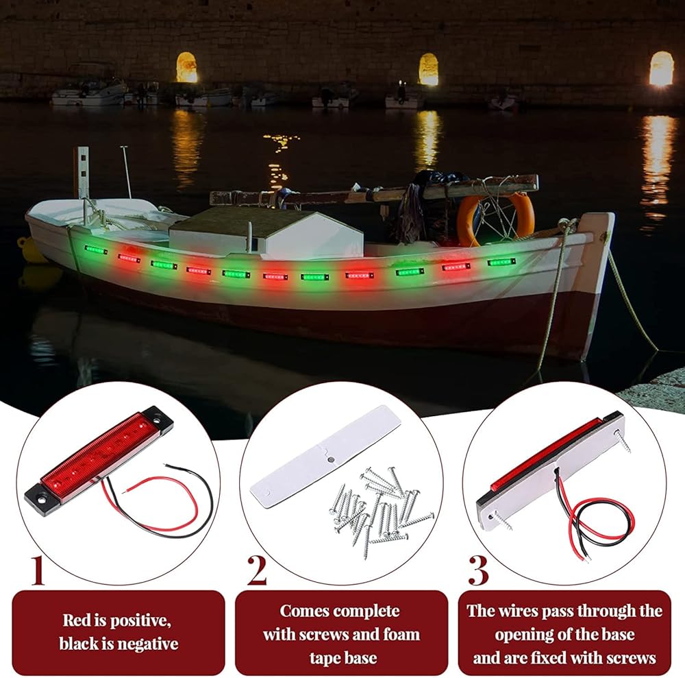 • الميزات: تشتمل مصابيح الملاحة LED الجديدة للقارب على شريط LED أحمر مقاس 3.8 بوصة وشريط LED أخضر مقاس 3.8 بوصة.
