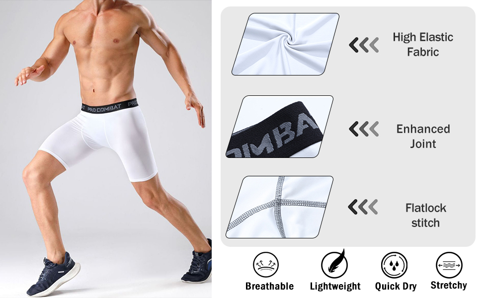 خياطة مسطحة - تصميم فريد من نوعه لشورتات الضغط للرجال، يسمح بالحركة المرنة دون الاحتكاك أو تهيج الجلد. نسيج مطاطي في 4 اتجاهات يناسب فخذيك تمامًا، مما يحسن الراحة والضغط على ساقيك. دعنا تستمتع برياضتك.