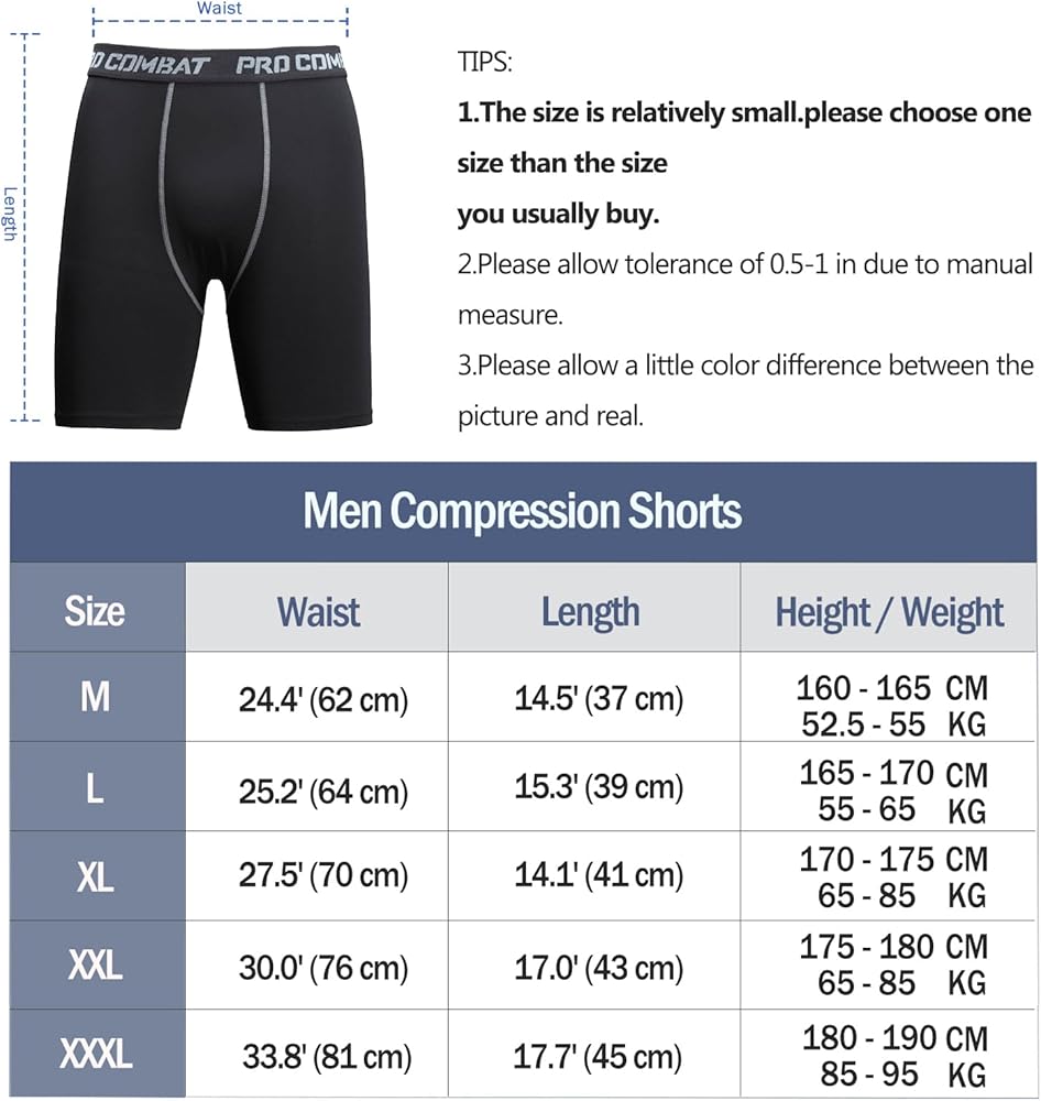لجميع الرياضات - شورت رياضي مضغوط للرجال مثالي للتمرين والجري والتمارين والبيسبول وكرة السلة وكرة القدم والمشي لمسافات طويلة وركوب الدراجات والتدريب وكرة القدم وتدريبات الأثقال واليوجا وما إلى ذلك. يرجى اختيار المقاس وفقًا لحجم جسمك من خلال الرجوع إلى إلى جدول المقاسات الخاص بنا الموجود في الصورة. إذا لم يكن المقاس مناسبًا، يتوفر استرداد كامل المبلغ أو الاستبدال.