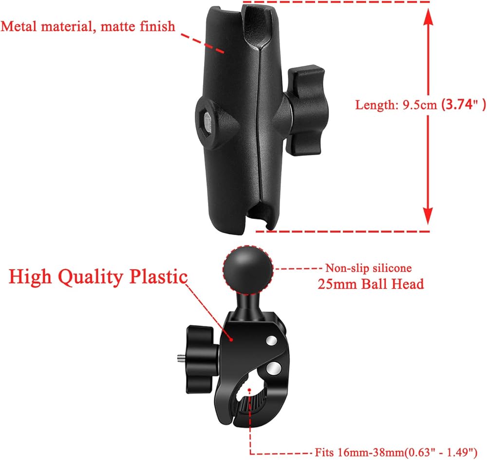 • دعامة تثبيت فائقة: يحتوي حامل المقود هذا على نطاق تثبيت من 16 مم إلى 38 مم (0.63 بوصة - 1.49 بوصة)، ولا يتطلب تركيب برغي معقد، فقط قم بلف المقبض لقفل المشبك بالسيليكون غير القابل للانزلاق إلى الوضع المقابل.