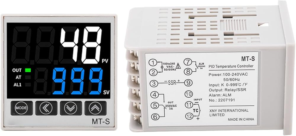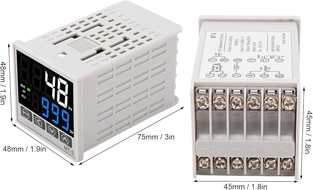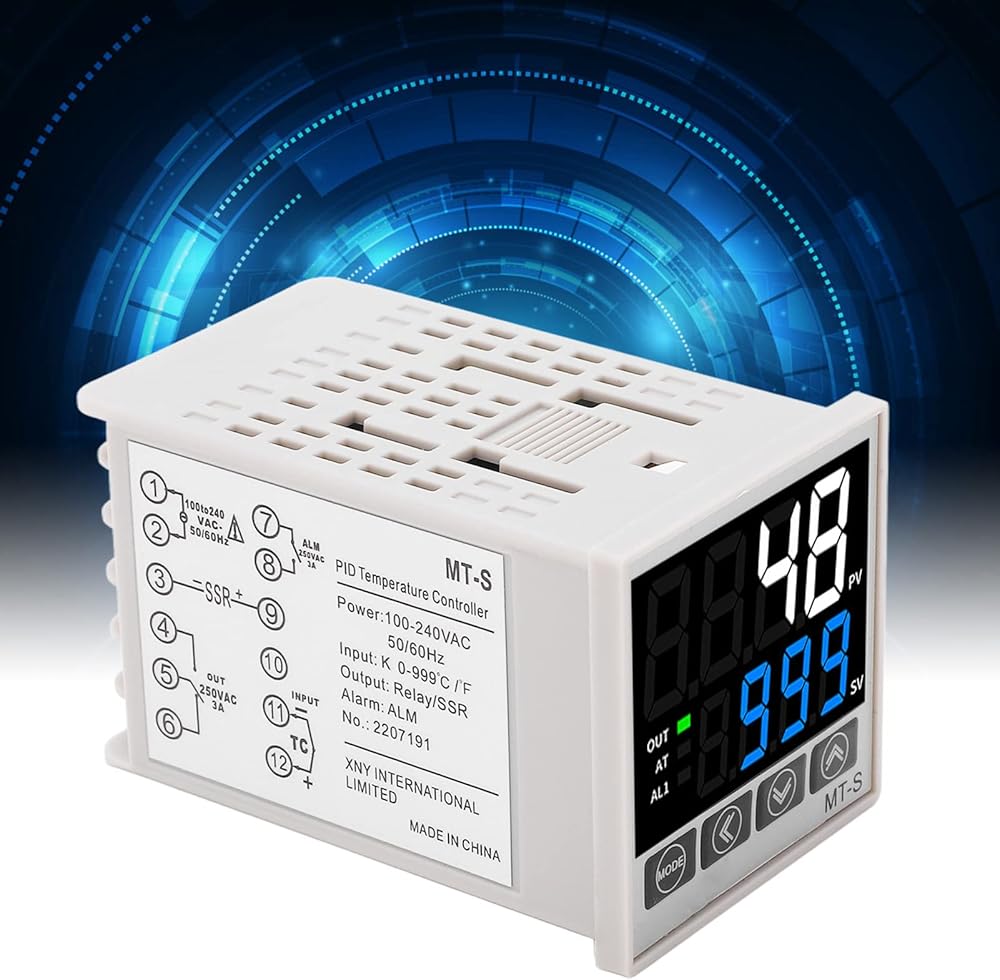 مجموعة أدوات التحكم في درجة الحرارة PID، AC100‑240V، طريقتان للعمل، 5 وظائف عرض، أداة التحكم التلقائي في درجة الحرارة بشاشة بإضاءة خلفية (48 × 48 مم (MT-S))