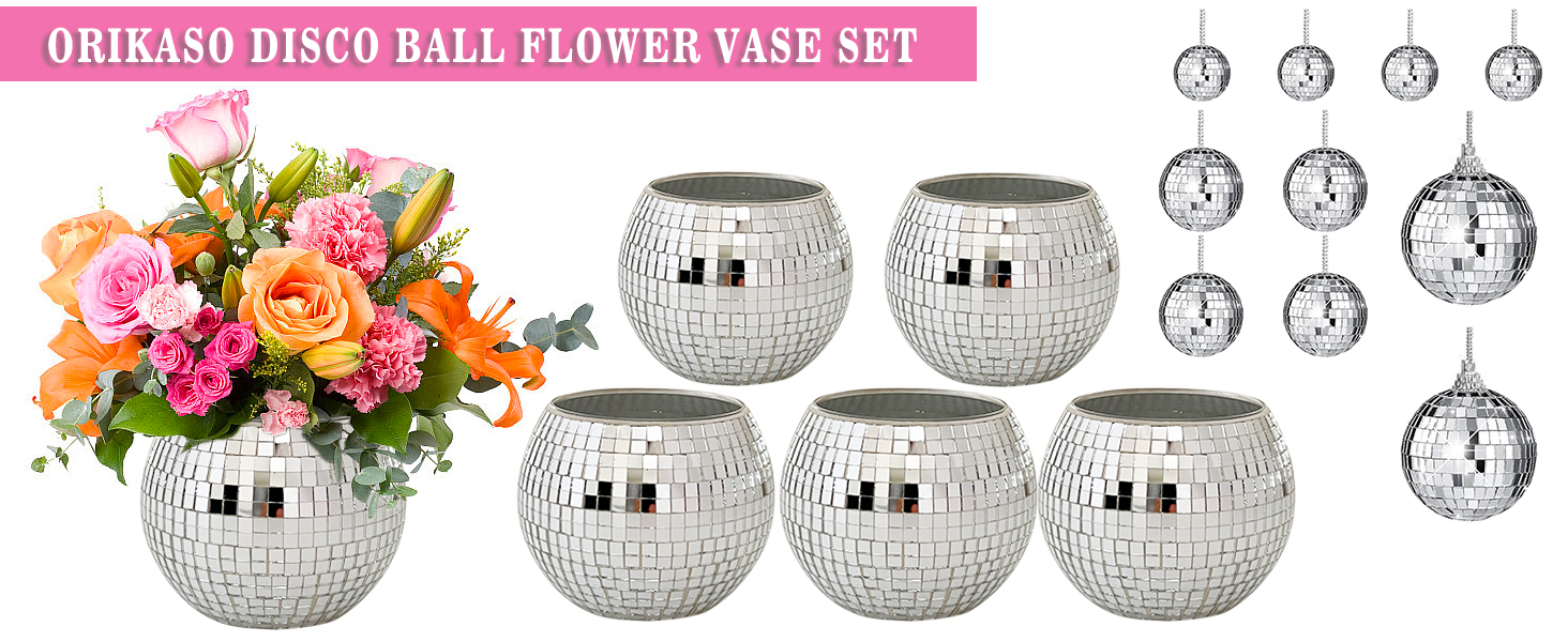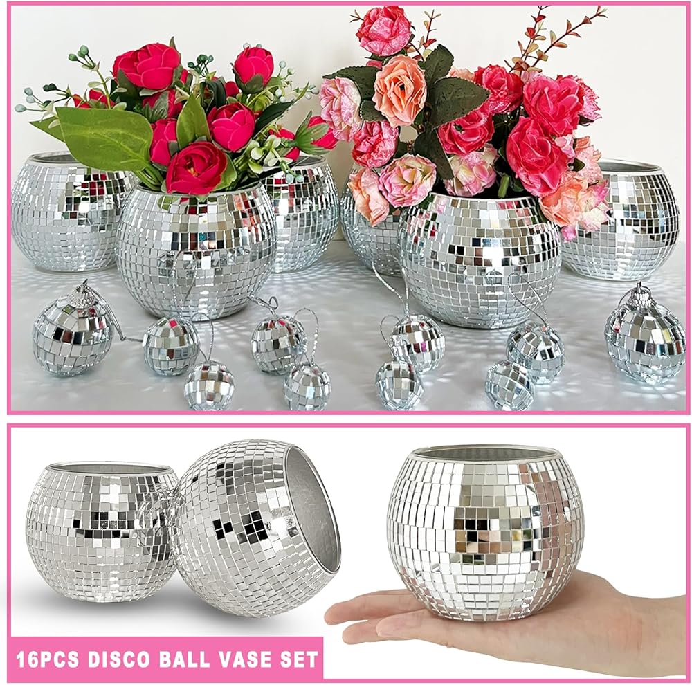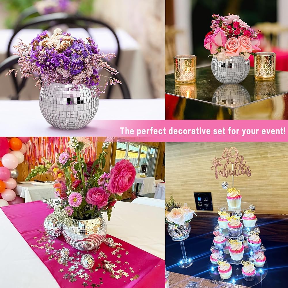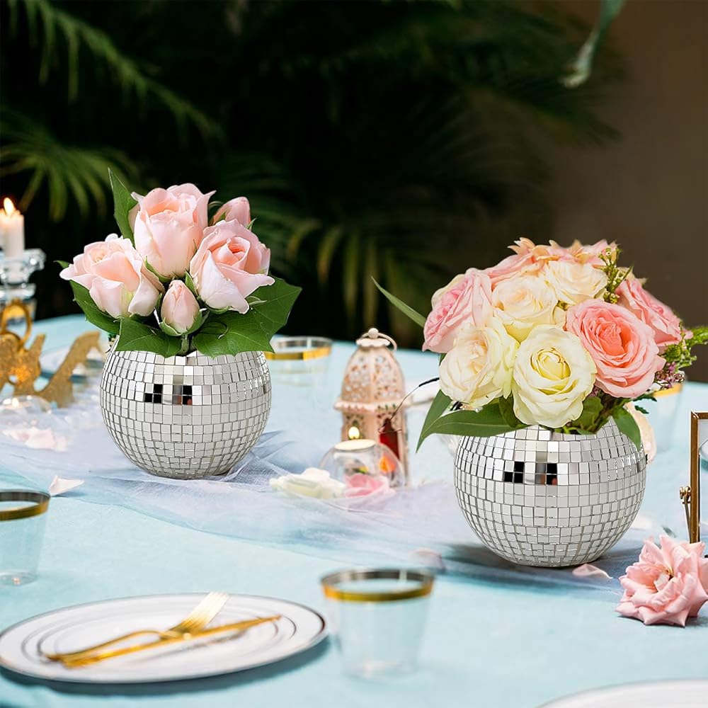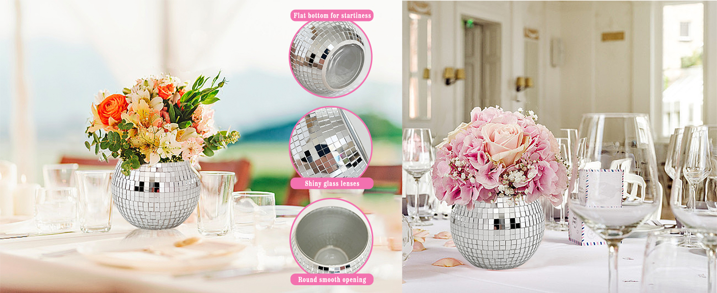 6 قطع 3x4 بوصة ديسكو الكرة زهرة المزهريات الزجاجية، 10 قطع كرات ديسكو مرآة، ديسكو الكرة الجدول ديكور حامل شمعة مزهرية زجاجية لقطع الزفاف الرئيسية حفلة عيد ميلاد الديكور