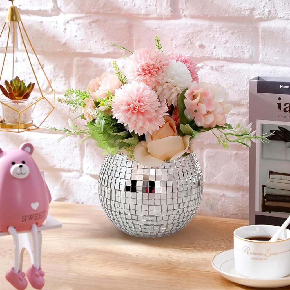 🎁هدية مثالية: تصل مزهريات زهرة الديسكو هذه مغلفة بشكل جذاب، وجاهزة لإبهار الأشخاص المهمين في حياتك. عيد ميلاد فريد من نوعه، الانتقال لمنزل جديد، زفاف، هدية عيد الميلاد. إذا استلمت مزهرية زهور مرآة بها تلف أو مشاكل أخرى، فلا تتردد في الاتصال بنا!