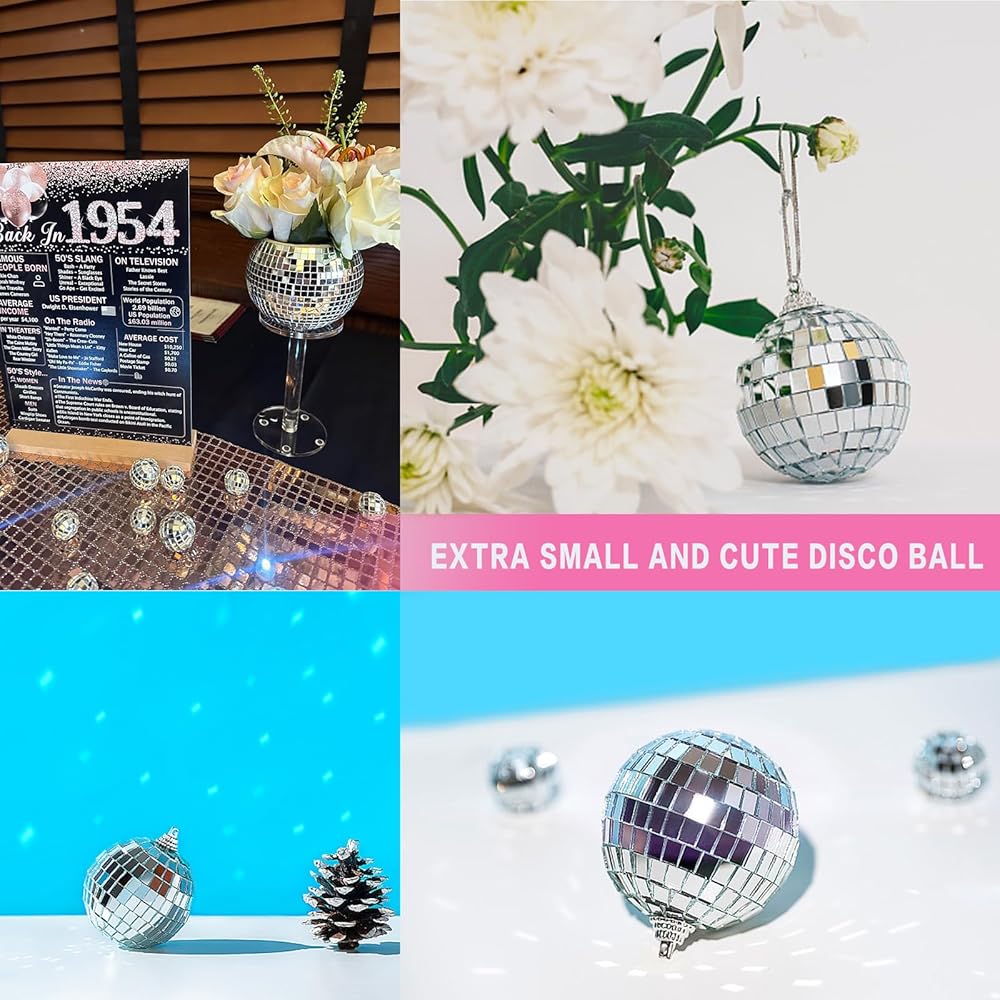 ✨العودة إلى السبعينيات: تخلق كرات مرآة الديسكو اللطيفة والساحرة أنماطًا وانعكاسات ضوئية مبهرة، مما يضيف لمسة من السحر والحنين إلى الفضاء. تعتبر كرات الديسكو الإضافية مثالية لخلق جو مفعم بالحيوية في حفلة أو حدث.