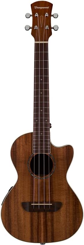 Orangewood Juno Tenor Acacia مع أوتار Aquila، وحقيبة حفلات مبطنة ممتازة، ومجموعة ملحقات تتميز بحزام وموالف ومخطط وتر متضمن