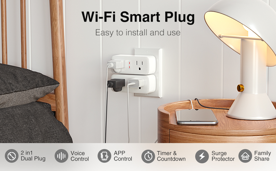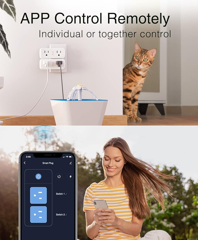 التحكم عن بعد في التطبيق: التحكم في مقابس الحياة الذكية عن بعد عبر تطبيقات الهاتف. تحقق من حالة الجهاز وقم بتشغيله/إيقاف تشغيله في أي وقت وفي أي مكان باستخدام شبكة آمنة ومستقرة. منافذ ذكية موفرة للطاقة ومتوافقة مع Alexa وGoogle Home.