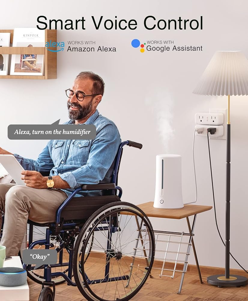 التحكم الصوتي بدون استخدام اليدين: مقابس ذكية متوافقة مع Alexa وGoogle Home للأوامر الصوتية. يمكنك التحكم بسهولة في الأجهزة باستخدام Alexa Echo Dot أو Google Home. مثالية لكبار السن والأفراد ذوي الإعاقة الجسدية.