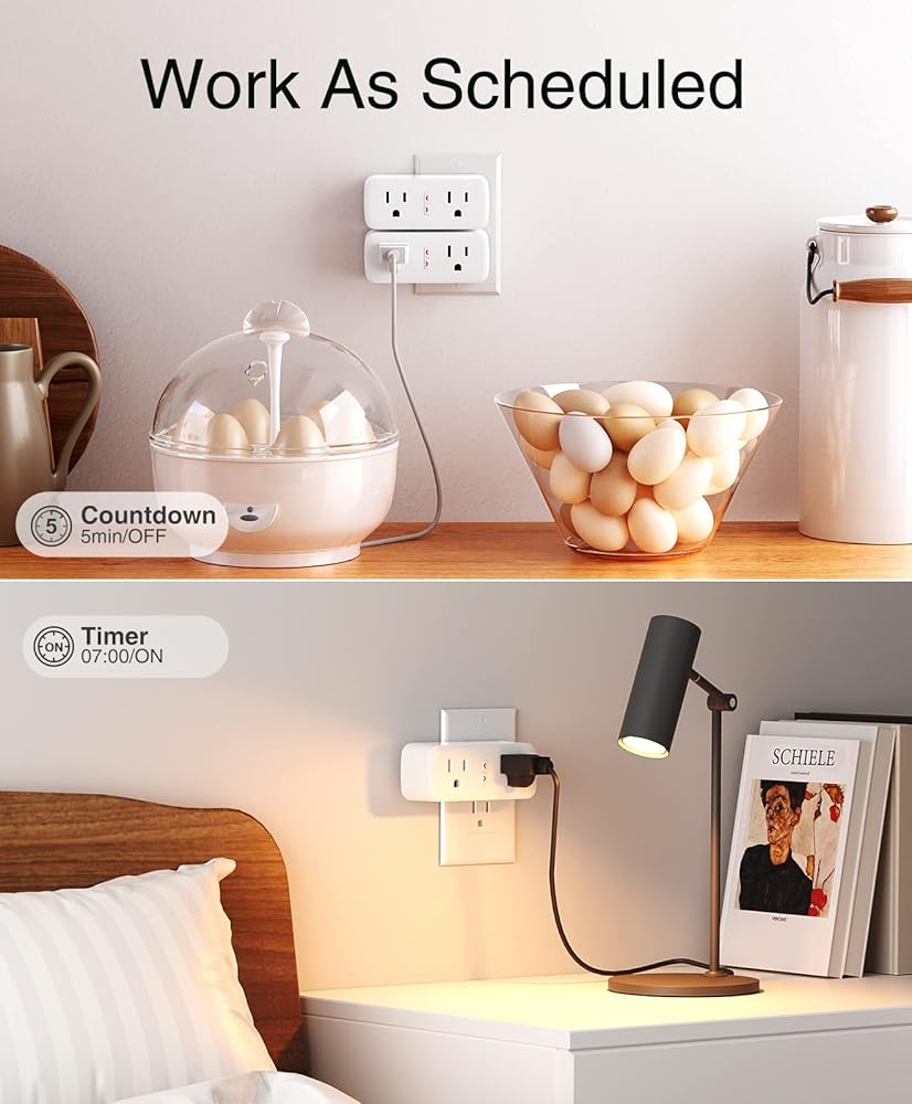 ضبط المؤقت والجدول الزمني: منافذ ذكية مع ميزات المؤقت والعد التنازلي. استخدم التطبيق لتعيين المؤقتات والجداول الزمنية للأجهزة المتصلة. مثالية لأضواء عيد الميلاد والمصابيح وأجهزة الترطيب والمراوح وأواني القهوة وأضواء نمو النباتات وخزانات الأسماك والمزيد.