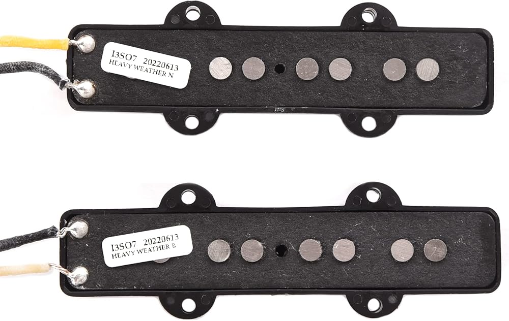 Signature Tone of a J Bass Legend Seymour Duncan's Heavy Weather Jazz Bass Pickup Set is aptly named, boasting the clear and articulate tone of perhaps the most legendary J Bass player of them all! This pickup set starts with a classic early-'60s Jazz Bass tone that's full of expressive low end punch, then Seymour Duncan modifies that formula with a slightly brighter response. This unique tone allows 4-string players to remain distinct in even the most crowded of mixes, whether you're simply keeping the beat or dazzling the crowd with sparkling false harmonic virtuosity. What's more, GearNuts's bass gurus find that Heavy Weather pickups sound equally great on both fretted and fretless bases, imbuing your instrument with the grit, growl, and harmonic clarity of an authentic vintage J Bass.Seymour Duncan Heavy Weather Jazz Bass Pickup Set Features: Delivers classic early-'60s Jazz Bass tones with a slightly brighter sound and