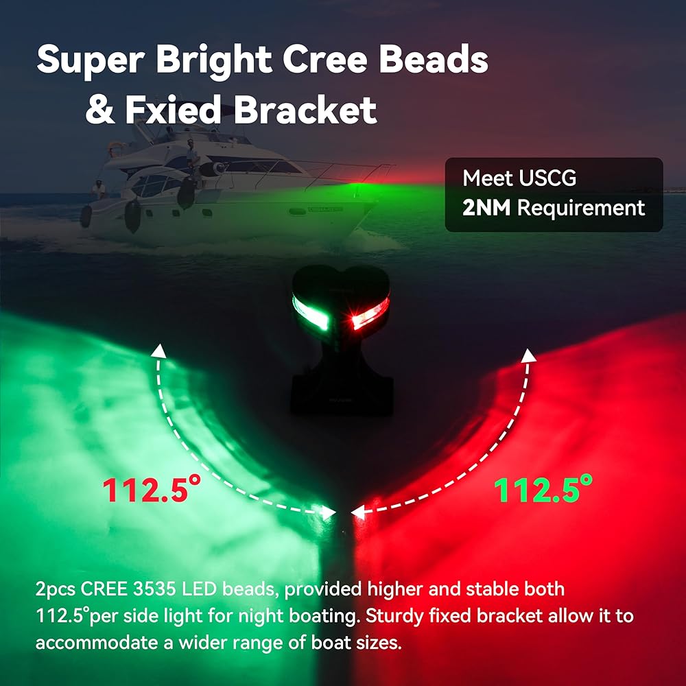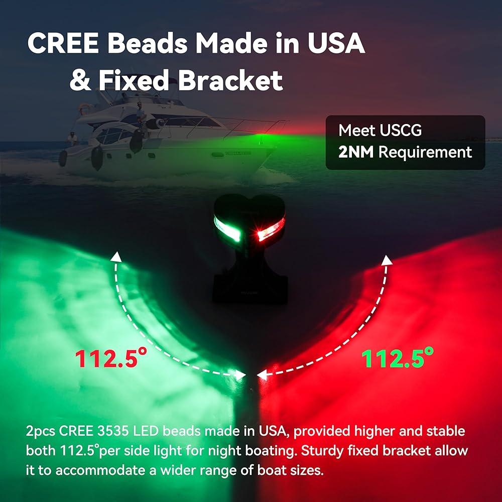 【تلبية متطلبات USCG 2NM】يلبي ضوء القوس البحري RVZONE متطلبات USCG لرؤية ميلين بحريين. أضواء الملاحة بالقارب باللون الأحمر والأخضر LED مثالية للقوارب السريعة العائمة والقوارب الشراعية وقوارب الصيد وما إلى ذلك.