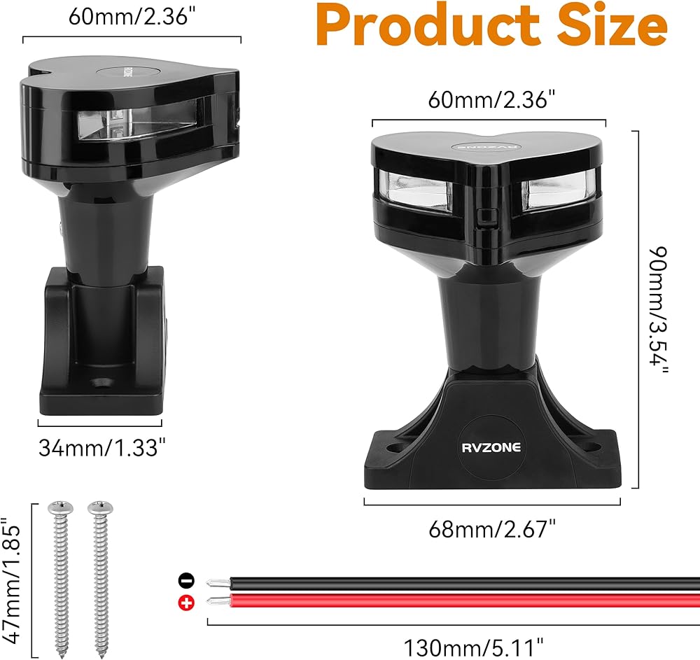【خرز CREE ممتاز مصنوع في الولايات المتحدة الأمريكية】مصابيح قوس القارب RVZONE مجهزة بخرزات LED 3535 عالية الجودة وعالية السطوع مصنوعة في الولايات المتحدة الأمريكية، مما ينتج ضوءًا أعلى وأكثر استقرارًا في الليل. تتميز مصابيح الملاحة للقوارب بزاوية إضاءة تبلغ 112.5 درجة على كل جانب لضمان الملاحة الآمنة ليلاً.