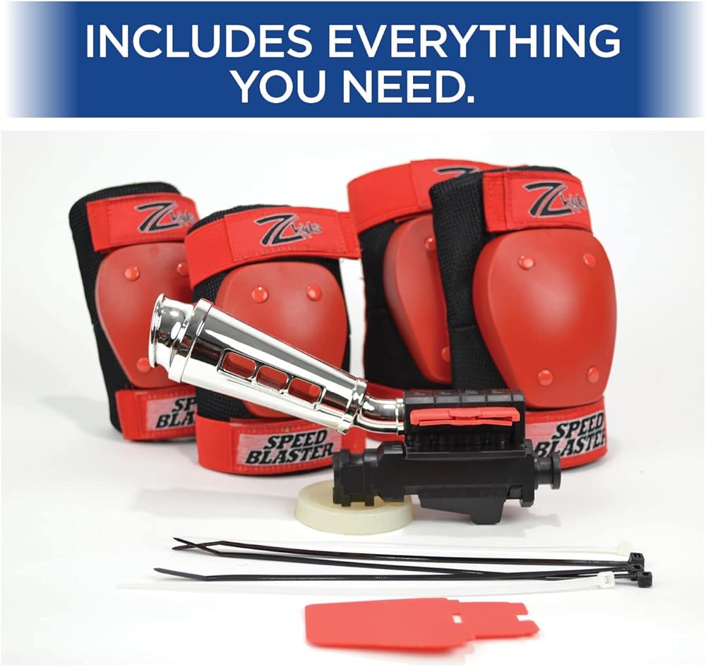 This is the one you remember from when you were a kid. Making engine sounds with baseball cards and clothespins. That idea has been updated with the Speed Blaster Engine Noise Maker. A plastic card from the engine hits the spokes and makes thrilling vroom engine sounds. The Engine is attached to the bike frame with provided zip ties. It is an easy installation and sturdy for the many rides ahead. Also Includes 2 protective knee and elbow pads. A complete set to look your best and be protected. At Zéfal USA we are true cycling fans. We ride...a lot and love the gear to make our rides more fun and safer. Zéfal's motto is Keep On Riding and we aim to help you do that!