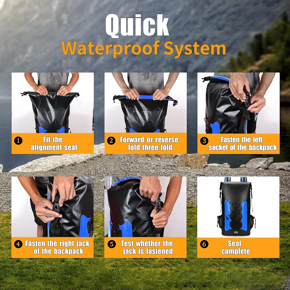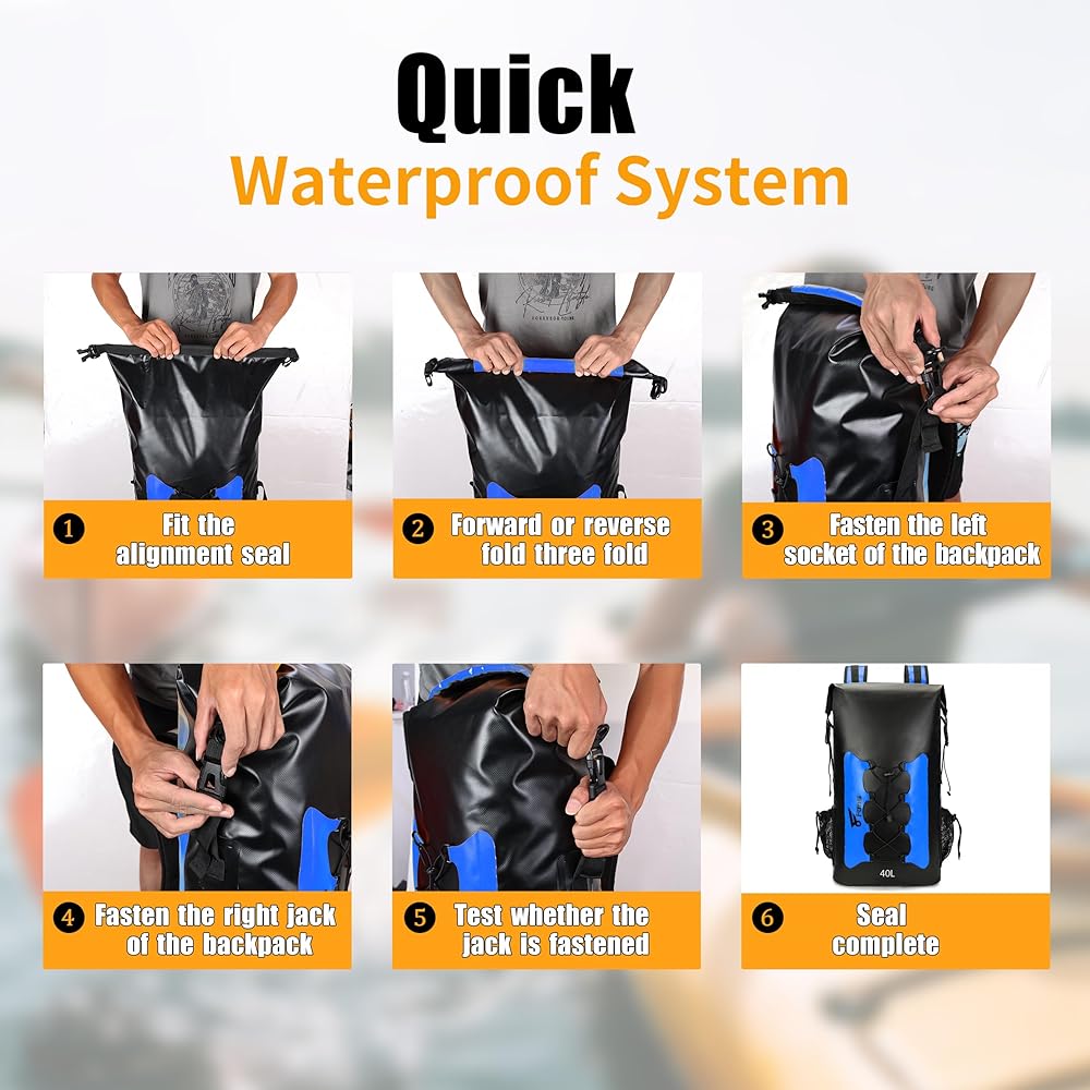 100% Waterproof Guarantee: Crafted from robust 500D PVC material, the 8Fans dry backpack offers exceptional waterproofing and durability. Even in the rainiest or wettest environments, rest assured that your belongings will remain completely dry.