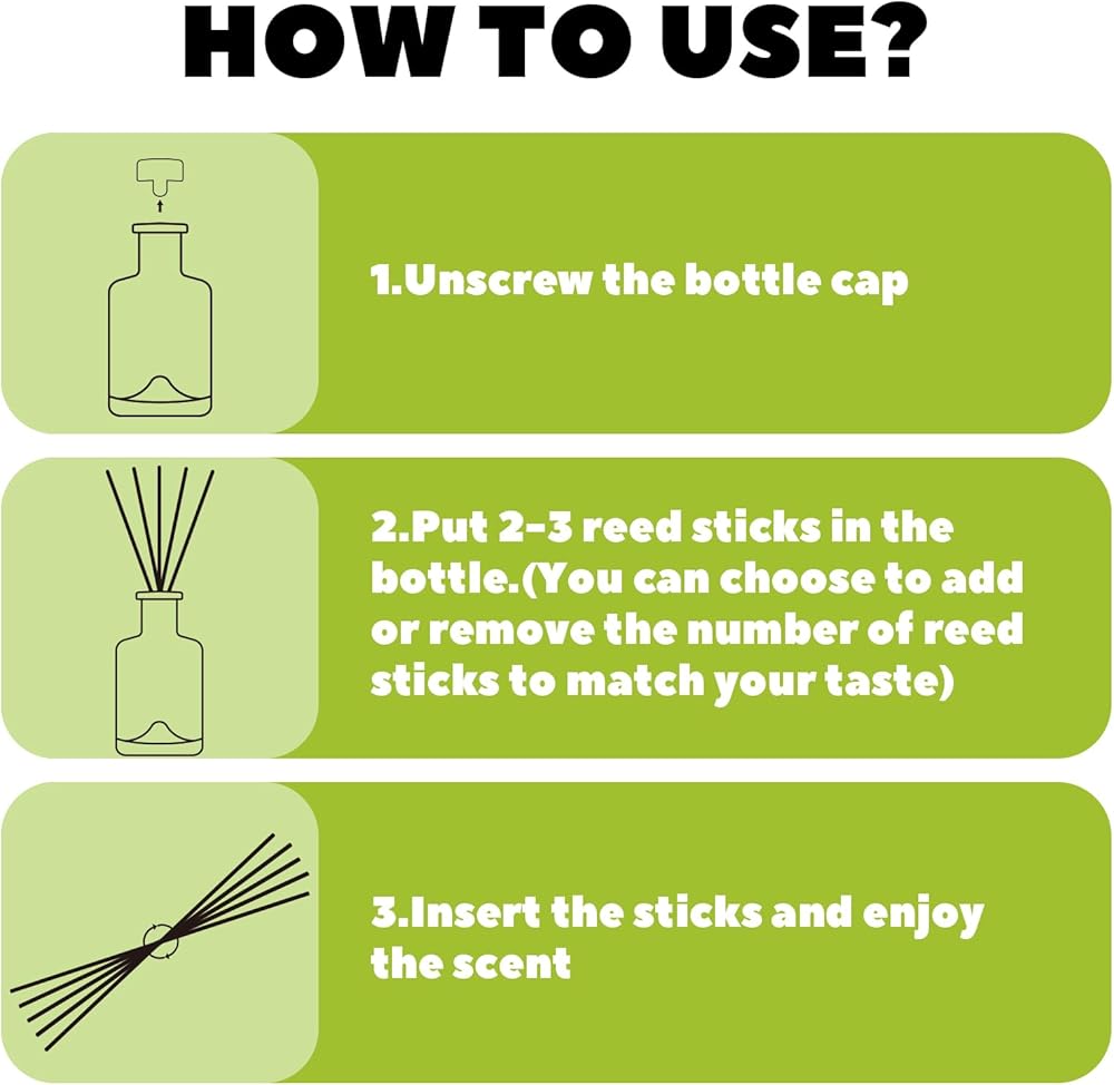 [Easy To Use] Unscrew the bottle cap, remove the plug, and insert the reed sticks inside the diffuser bottle. When the fragrance fades, turn the reed upside down.
