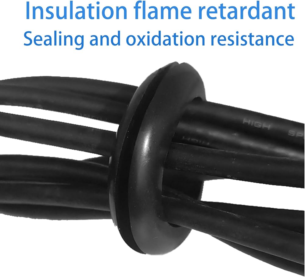 【High-Quality Materials】The grommets are made of high-quality rubber, with characteristics such as strong toughness, aging resistance, flame retardancy and insulation protection.