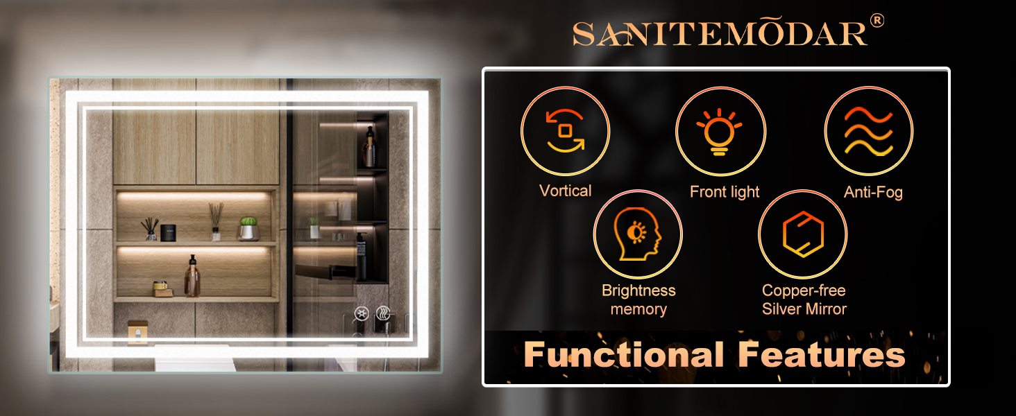 【وظيفة مضادة للضباب】مرآة حمام LED مع وظيفة إزالة الضباب المستقلة، يمكن أن تتيح لك رؤية نفسك دائمًا في البيئة الرطبة دون ضبابية، كل ما عليك هو النقر على زر وظيفة إزالة الضباب، وسوف تبدأ في العمل على الفور، ولكي تزيد من ذلك. منطقة إزالة الضباب