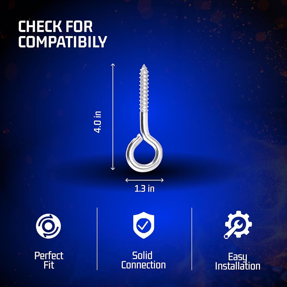 • تركيب سهل: تأتي براغي العين الخاصة بنا للخشب، والمعروفة أيضًا باسم i Hooks، مع عملية تركيب مباشرة، مما يسمح بإعداد مشروع سريع وسهل. لا يضيع الوقت في التركيبات المعقدة مع هذه الخطافات اللولبية