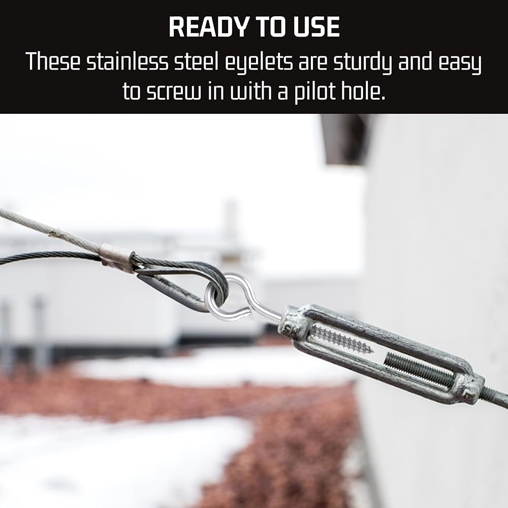 • المسامير التي يمكنك الاعتماد عليها: مسمار العين المصنوع من الفولاذ المقاوم للصدأ مقاس 3/8 بوصة × 2.5 بوصة، والمعروف أيضًا باسم المسمار ذو العيينة، قوي ومناسب للاستخدام الداخلي والخارجي. يوفر برغي الخطاف هذا مقاومة فائقة للصدأ مقارنة بالفولاذ العادي