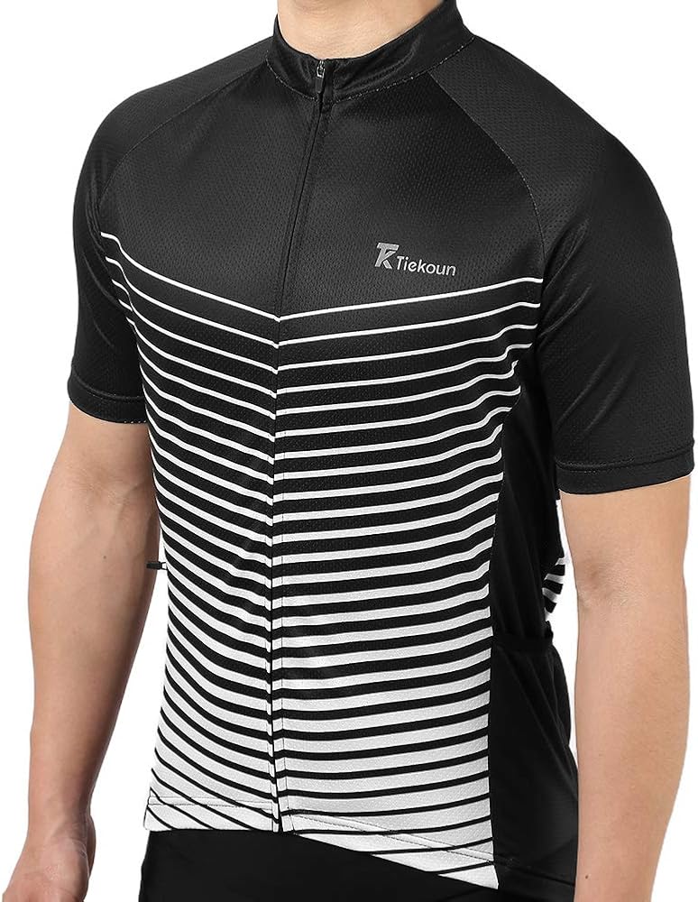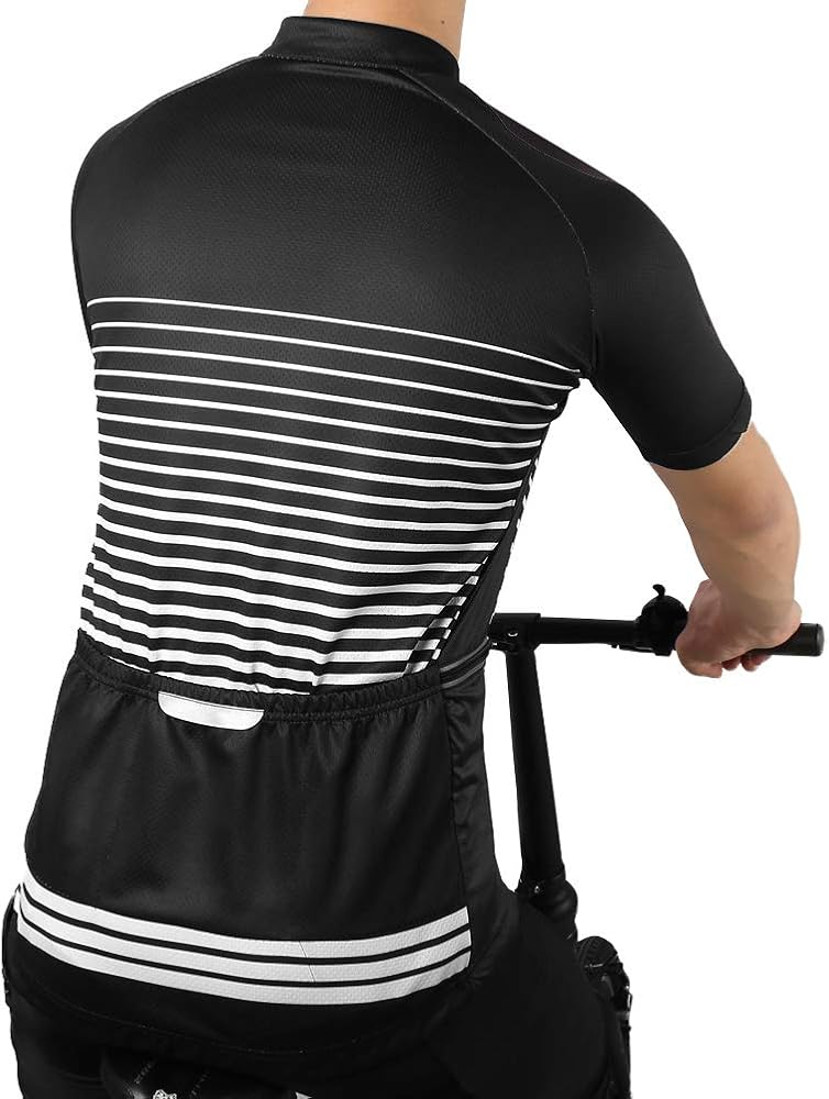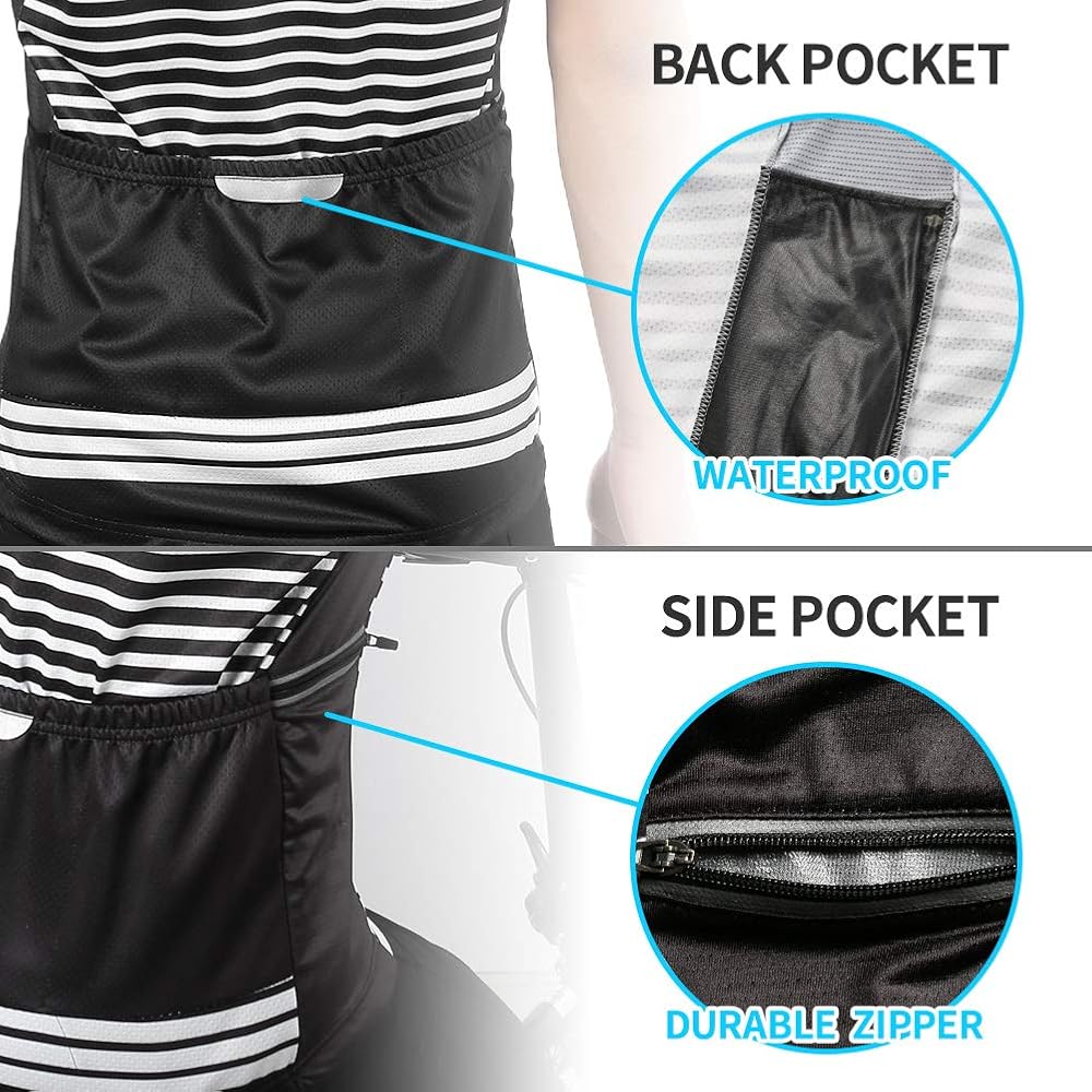 100% Polyester.Ultra-soft and UV protection.Full zipper in front, easy to wear and take off..High quality Moisture Wicking Fabric, quick-dry feature makes you feel more comfortable..With 5 Pockets for safe storage, one of which has a zipper and is waterproof!.There are reflective signs on the back of cycling jersey to enhance the safety of cycling at night