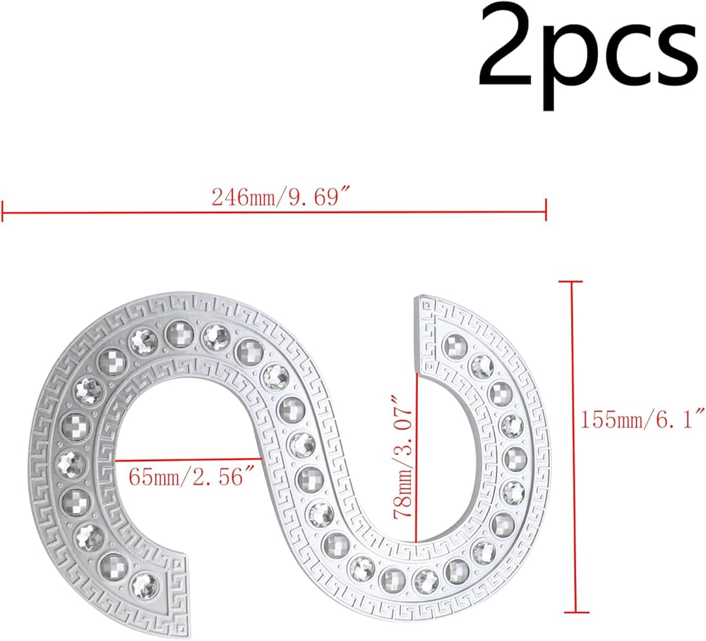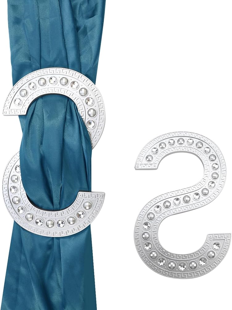 -Unique Design: S-shaped curtain holdback, the surface is covered with luxurious crystals and delicate patterns, looks unique and elegant, adding a beautiful view to your curtains.