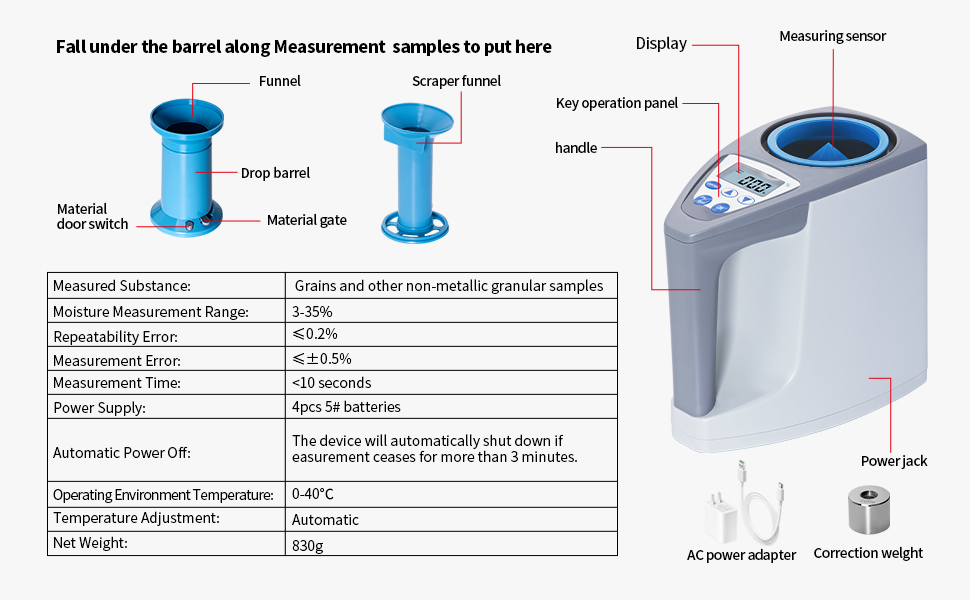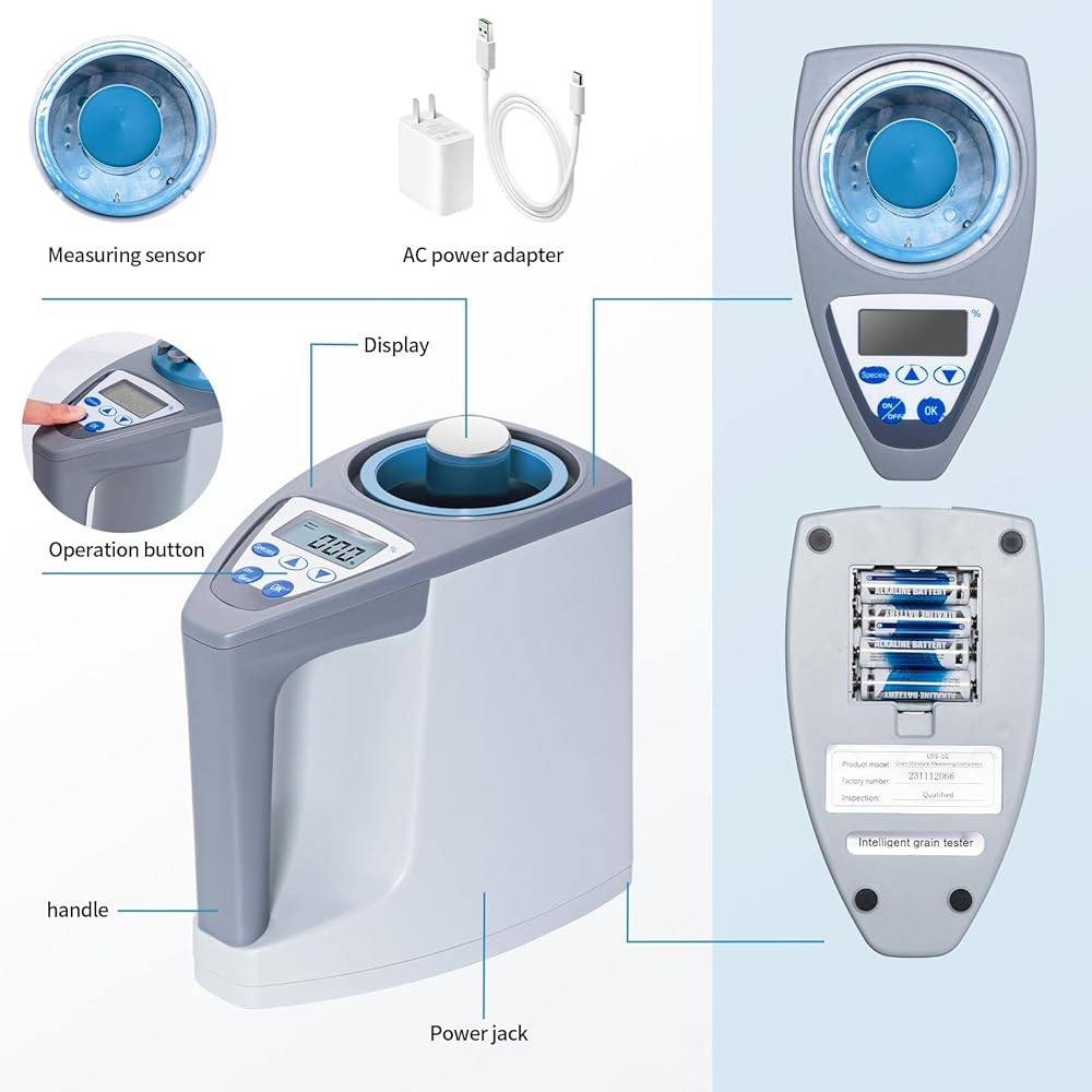 🚀 تشغيل بسيط لمختلف الحبوب: لا يتطلب إعدادًا معقدًا، تشغيل بلمسة واحدة للقياسات السريعة، مناسب لـ 20 نوعًا من أنواع الحبوب المختلفة، مريح وسريع.