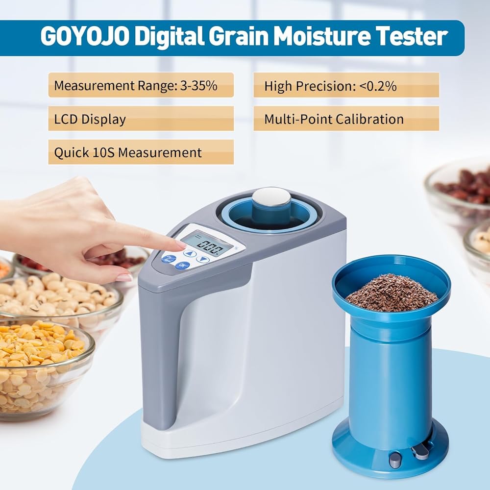 جهاز اختبار الرطوبة المحمول GOYOJO محلل رطوبة الحبوب نطاق قياس 3-35% دقة 0.1% 20 نوعًا من الحبوب الرقمية بما في ذلك. القمح والذرة والأرز وشاشة LCD ومقياس رطوبة المحاصيل