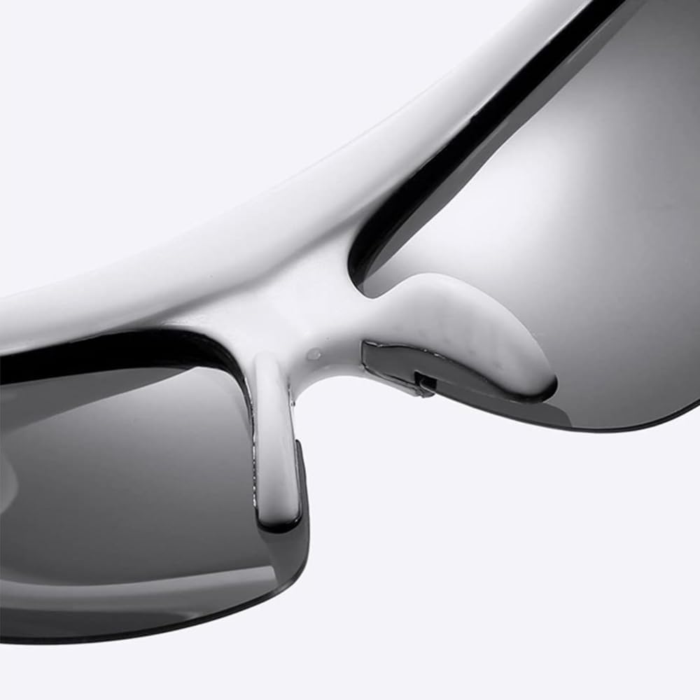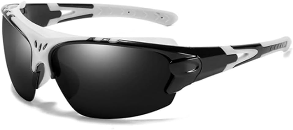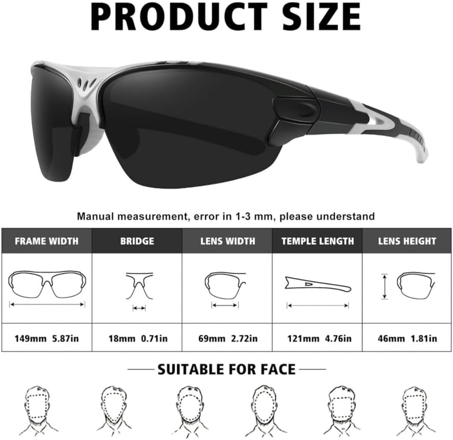 White And Black Shield Wraparound Sports Windproof Riding Running Hiking Cycling Fishing Motorcycle Hiking Sunglasses for Men Women Outdoor Polarized HD UV Protection Mirrored Reflective Sport Glasses LIGHTWEIGHT: Our wrap around running blue sports sunglasses are featherlight, ensuring you can push your limits without feeling weighed down. The aerodynamic design offers a sleek and streamlined look while keeping you comfortable during extended wear. HIGH QUALITY: The Polarized Sports Sunglasses are made from high-quality, environmentally friendly TAC material that is both lightweight and durable.And the Anti-UV grade: UV400. The rubber nose pad ensures that the sunglasses stay in place, even during intense physical activities. BASE LENS COLOR and UV PROTECTION – Smoke lenses are ideal for bright sunlight with the most realistic color reproduction and also work well in medium light and partial shade. Blue lenses increase contrast and depth perception, ideal for partly cloudy to sunny conditions. SECURE FIT: We understand the importance of a secure fit during vigorous activities. Our outdoor sunglasses feature a precision-engineered frame and non-slip nose pads, providing you with a snug, comfortable fit that stays in place, no matter how intense your workout or adventure becomes. SWEAT MANAGEMENT: Don't let pesky sweat get in the way of your focus. These sunglasses incorporate a specialized sweat management feature that channels moisture away from your eyes, keeping you dry and irritation-free. No more distractions from sweat running into your eyes, so you can stay focused on your performance. FEATURE: Wear polarized sunglasses, keep the primary color,which can help improve visual clarity and contrast effectively,it is easier to eliminate reflection and scattered light, make the scene clearer and softer, and protect the eyes more perfectly. MULTI-PURPOSE SPORT SUNGLASSES:The Lightweight design of Cycling glasses is ideal for motorcycle and cycling bicycle, driving, running, fishing, racing, skiing, climbing, trekking or other outdoor activities. PREMIUM FRAMES – Street Knitted sunglass frames are lightweight, extremely flexible, and heat and UV resistant.Frames are well known for their astounding strength, lightweight comfort, shape integrity, and impact resistance. This virtually indestructible ultra-lightweight and malleable material translates to a very comfortable fit and the tacky nose and temple pads prevent slipping.