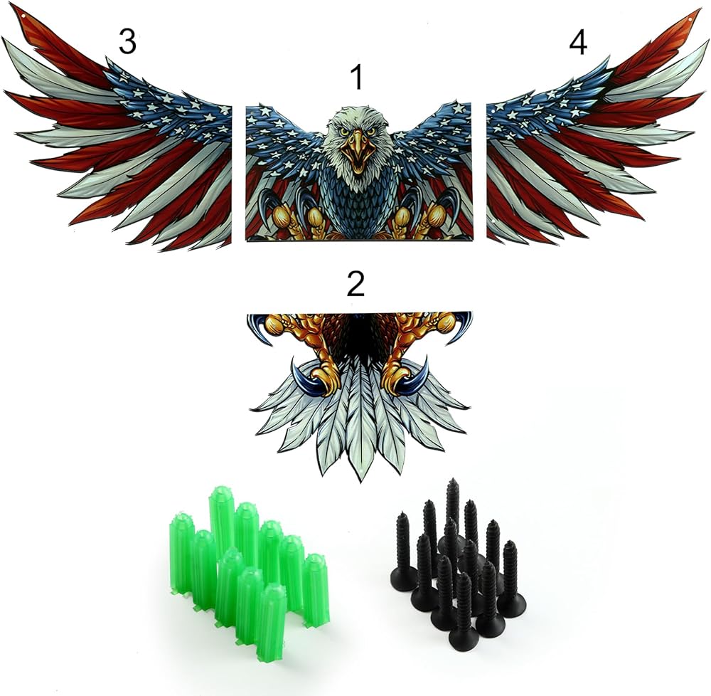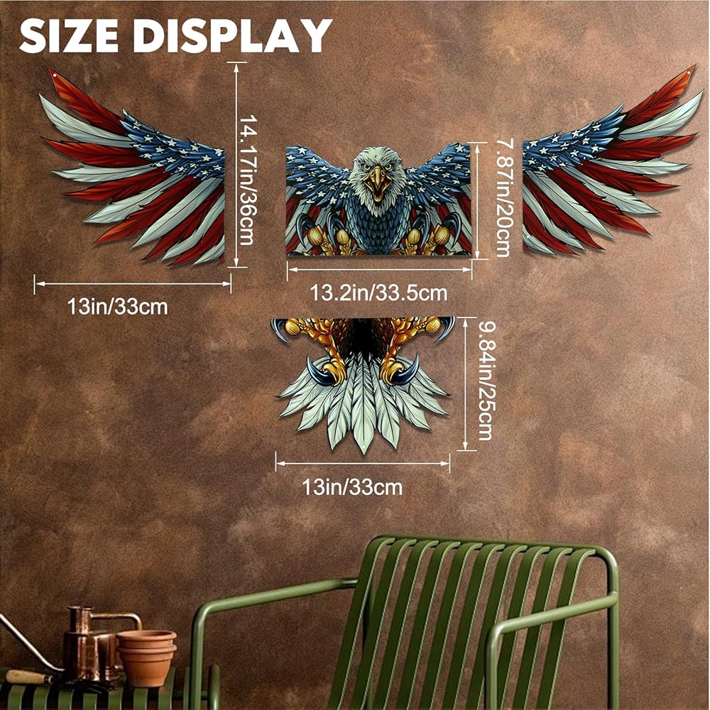 لوحة فنية جدارية من WOCOKA معدنية للنسر الأصلع الأمريكي، مقاس 40 بوصة × 24 بوصة ديكور جدار نسر معدني كبير الحجم بعلم أمريكي نسر أصلع معلق على شكل نحت وطني لتزيين الحائط في يوم الاستقلال (4 قطع مجمعة)