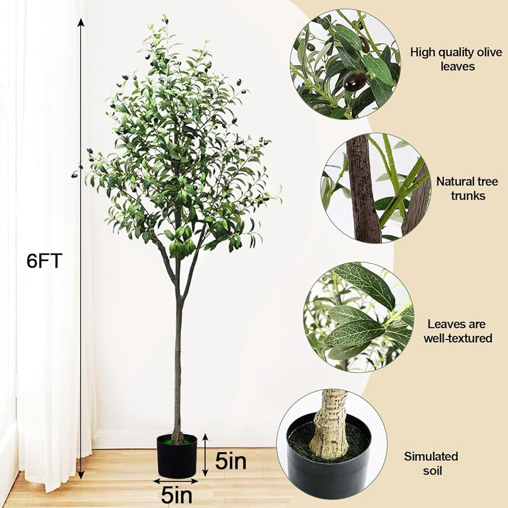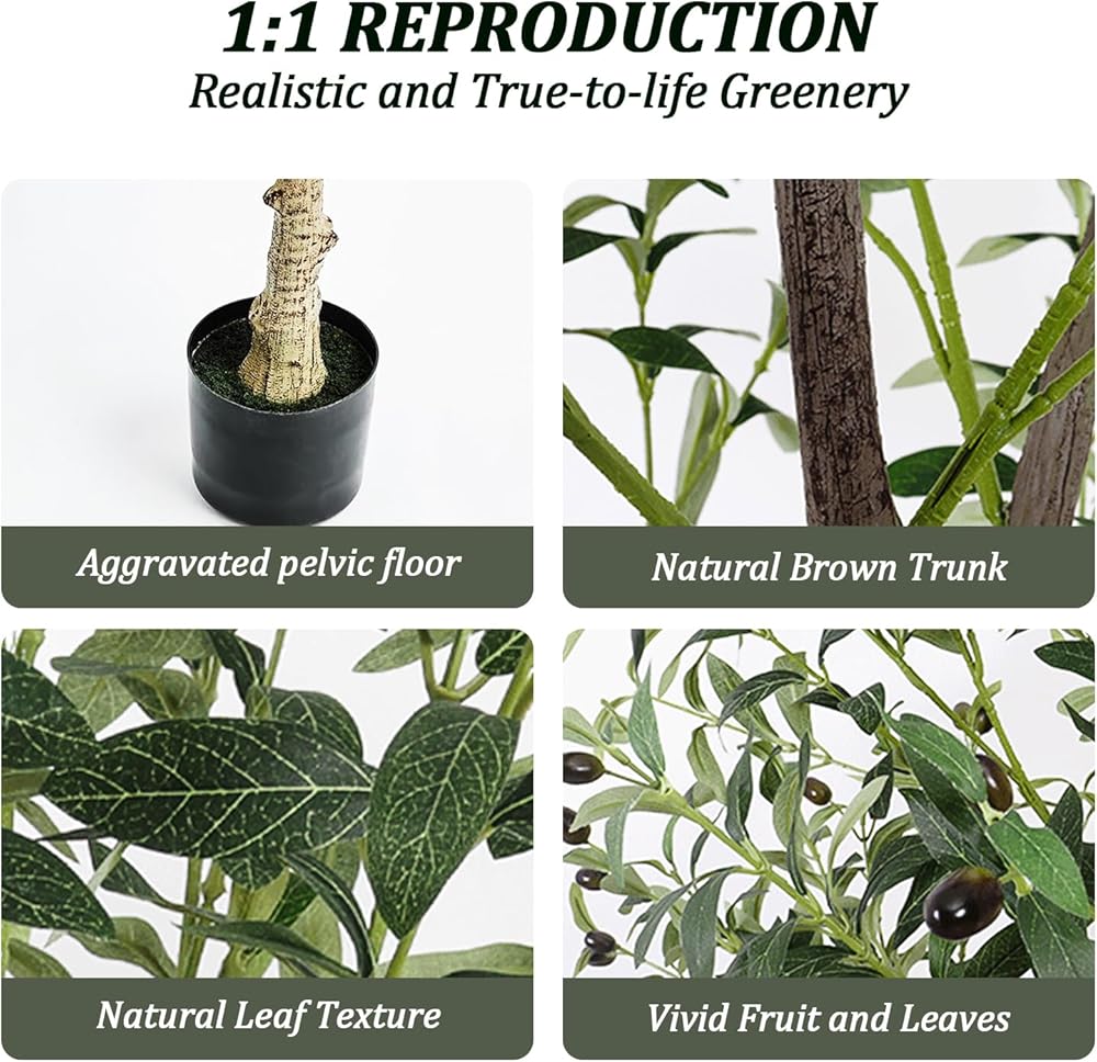 - أوراق الشجر النابضة بالحياة: تتميز شجرة الزيتون الصناعية بطول 5 أقدام بأوراق حريرية واقعية وفواكه زيتون للحصول على مظهر طبيعي.