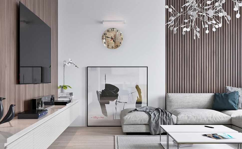 • 【استخدام على نطاق واسع】حافظ على الوقت بشكل عصري، مثالي لغرفة المعيشة، غرفة النوم، المطبخ، الحمام، الفصل الدراسي، غرفة الضيوف، المكتب، غرفة الطعام، غرفة المقهى، المكتبة، أو أي جدار من أي لون.
