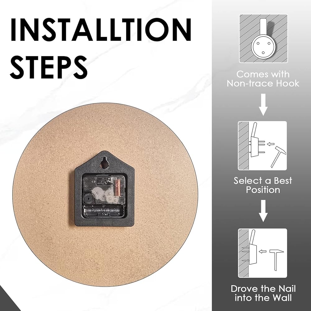 • 【مادة صديقة للبيئة】MDF، لون متين وحيوي، واضح للقراءة، بدون غطاء زجاجي ولا إطار للساعة، مما يخلق مزيجًا عمليًا وجميلاً. تضمن حركات الكوارتز الدقيقة حفظ الوقت بدقة.