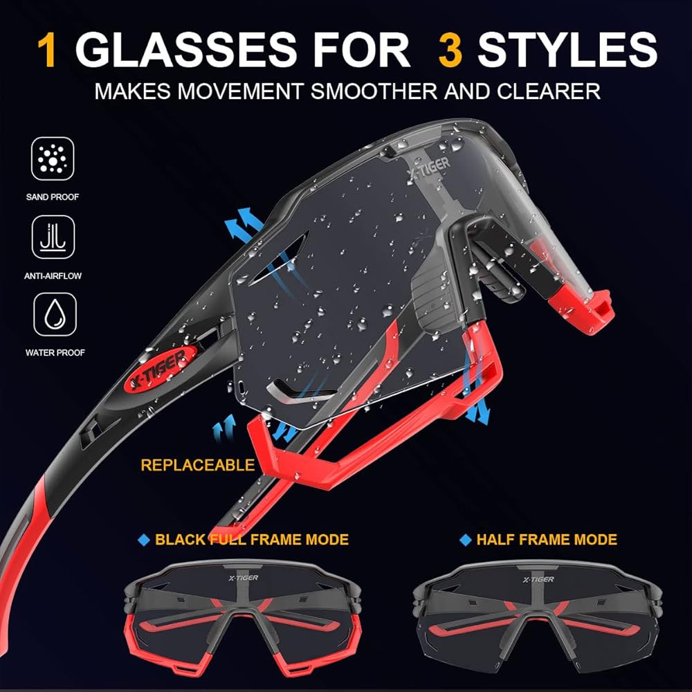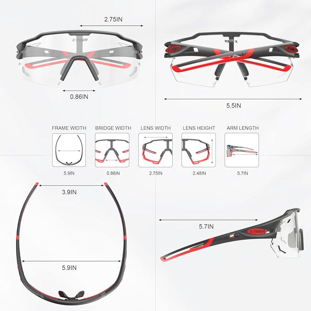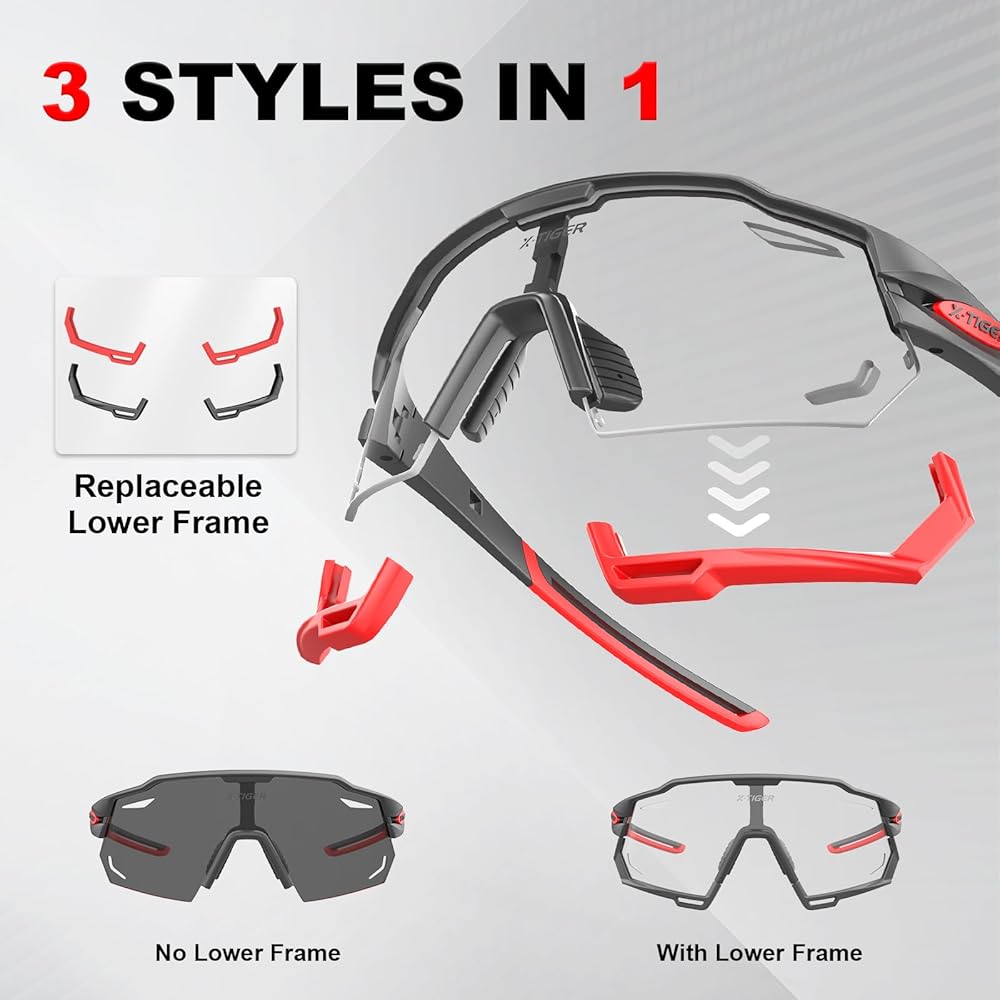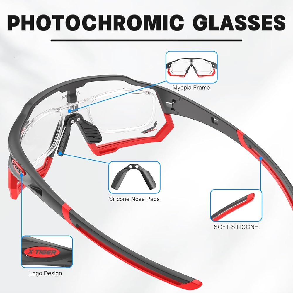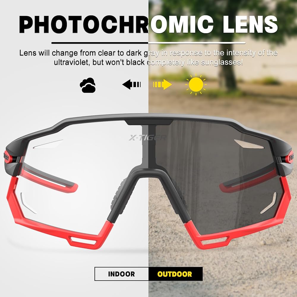 نظارات ركوب الدراجات X-TIGER فوتوكروميك للرجال والنساء، نظارات شمسية رياضية شفافة للحماية من الأشعة فوق البنفسجية للجري على الدراجات الجبلية