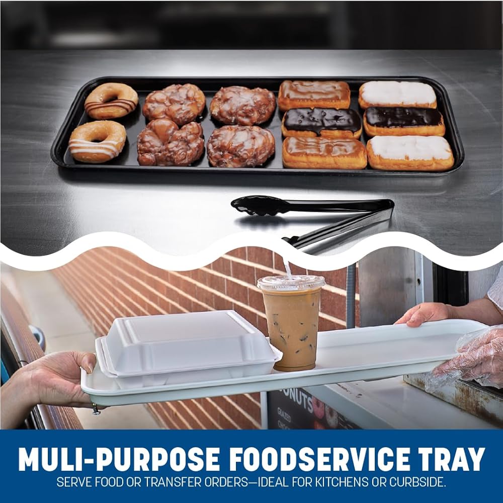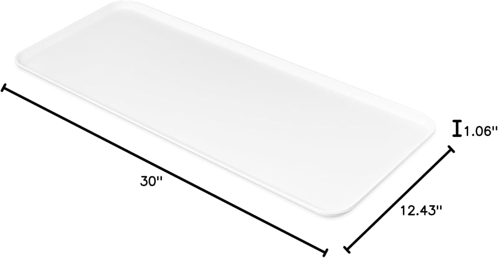 Introducing the Fiberglass Market Tray, a must-have for any foodservice establishment looking to enhance their presentation and organization. Measuring at 30" x 12 7/16" x 1 1/16", this tray is the perfect size for displaying a variety of items, from fruits and vegetables to freshly baked goods. Made with reinforced durable rods, this tray is built to last and withstand daily use in a busy kitchen or market. The rounded corners not only add to its sleek and modern design, but also make it easy to clean and maintain. Versatile and portable, this tray can be used for various applications, including catering, buffet service, or simply as a display tray for your products. Its lightweight construction makes it easy to carry and move around as needed. Clean-up is a breeze with this dishwasher-safe tray, saving you time and effort in maintaining its pristine condition. Plus, it is NSF listed, ensuring its safety and reliability for use in foodservice environments. Overall, the Fiberglass Market Tray is a durable, versatile, and stylish addition to any foodservice operation, whether it's in a restaurant, market, or catering business. Order yours today and elevate your presentation to the next level.