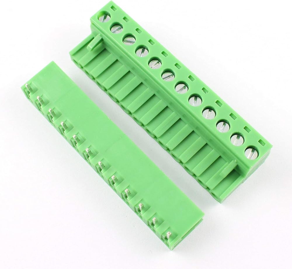 DBParts 5 Sets 12-Pin (12 Pole) Angle Screw Terminal Block Connector 5.08mm Pitch Panel PCB Mount DIY